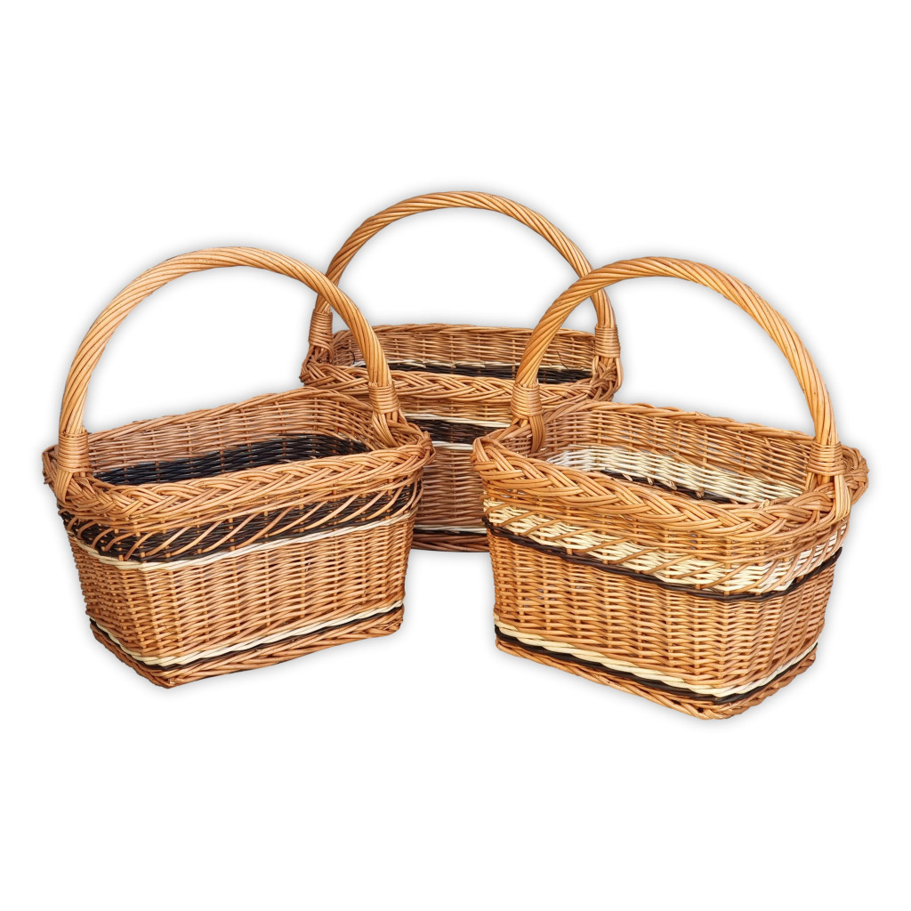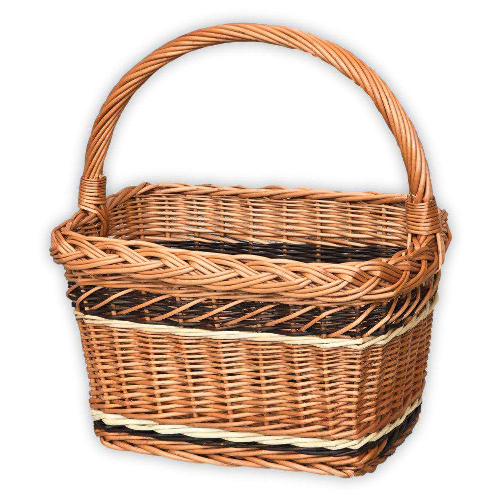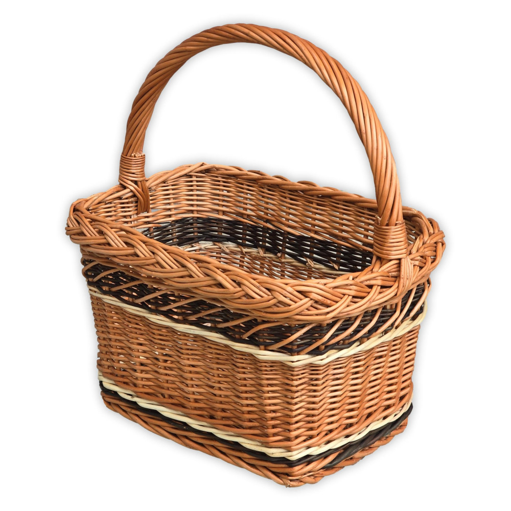 Különleges, téglalap alapú bevásárlókosár körbe díszítő fonással.