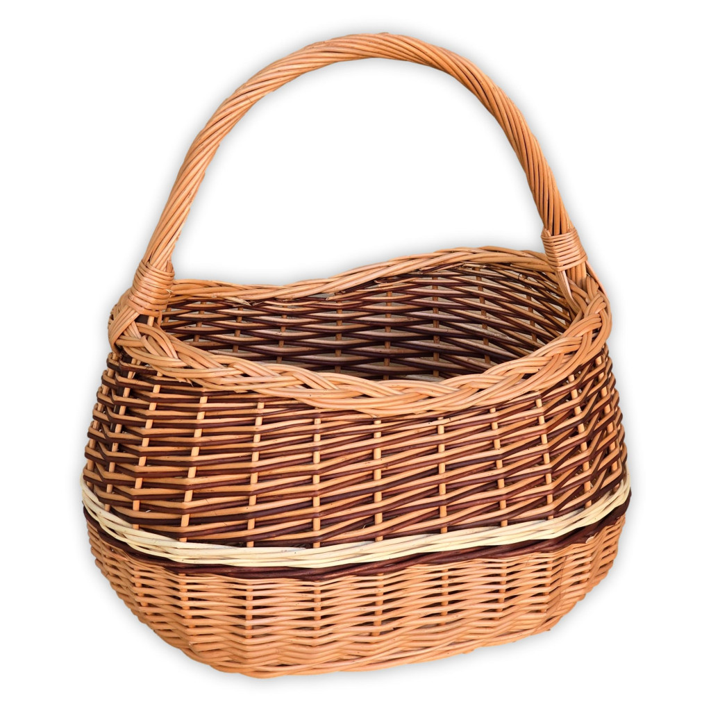 Különleges fazonú bevásárló kosár, körbe nagyon szép vörös és fehér díszítéssel.