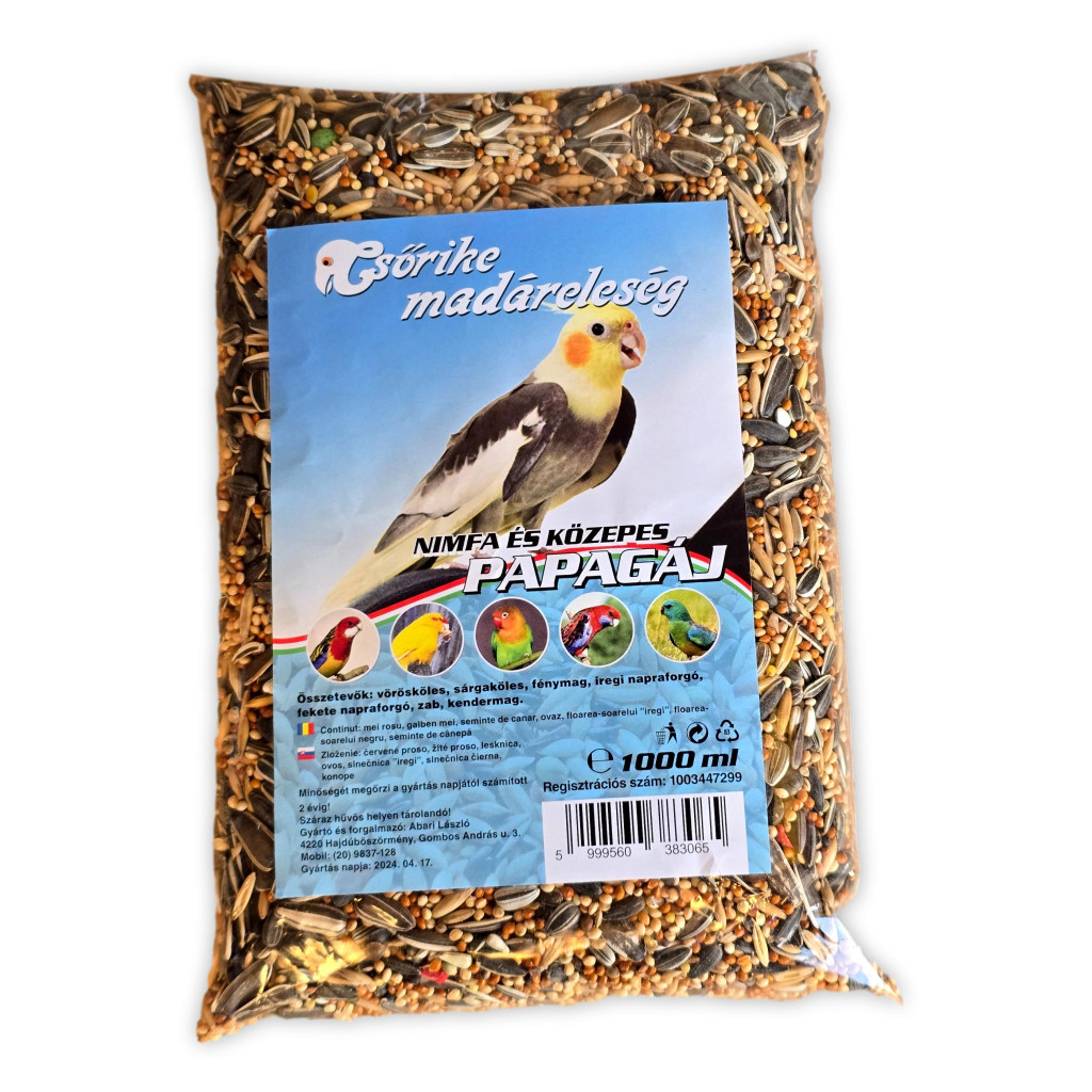 Csőrike madáreleség - nimfa és közepes papagáj - 1 liter