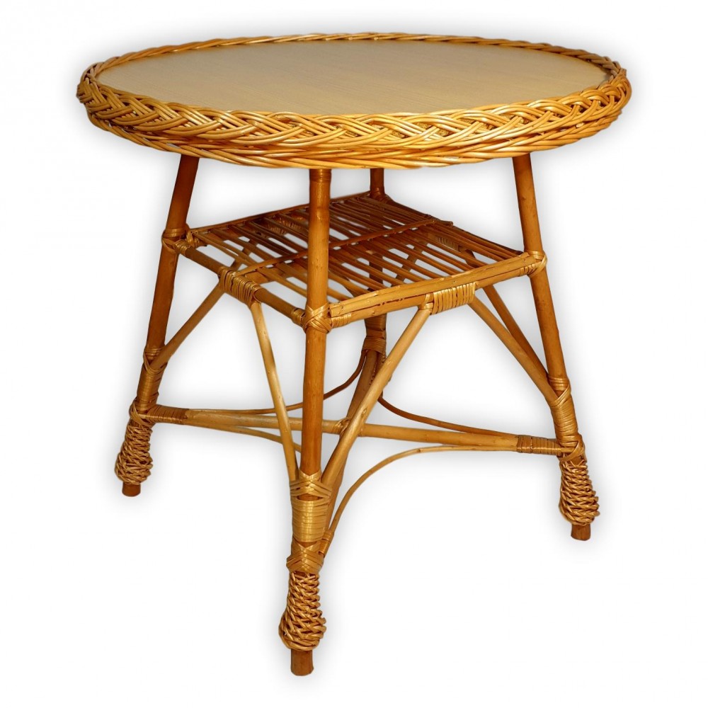Az asztal természetes anyaghasználatának köszönhetően meleg, otthonos hangulatot áraszt, miközben a kézműves fonás részletei elegáns megjelenést biztosítanak. Az asztal középső polccal rendelkezik, amely praktikus tárolási lehetőséget nyújt könyvek, újságok vagy kisebb tárgyak számára. Ideális választás nappalikba, télikertekbe vagy teraszokra.
