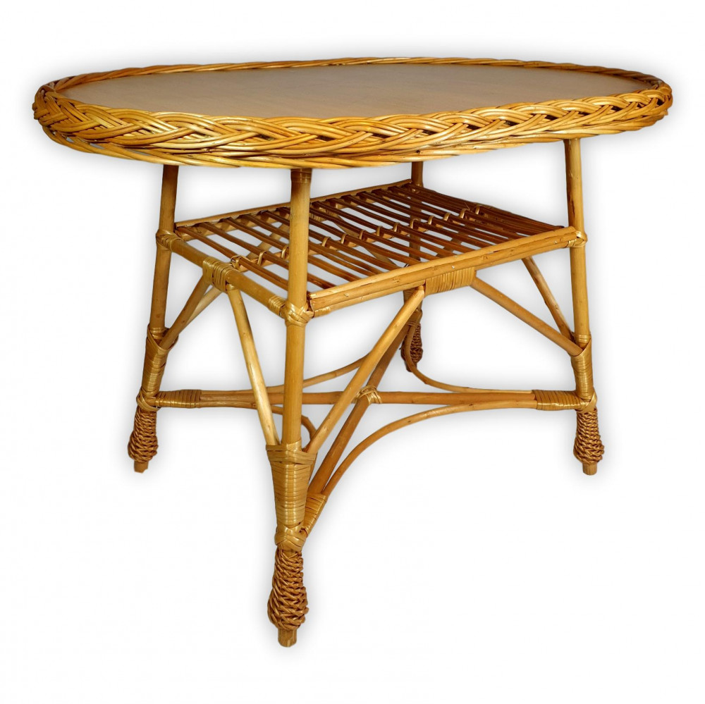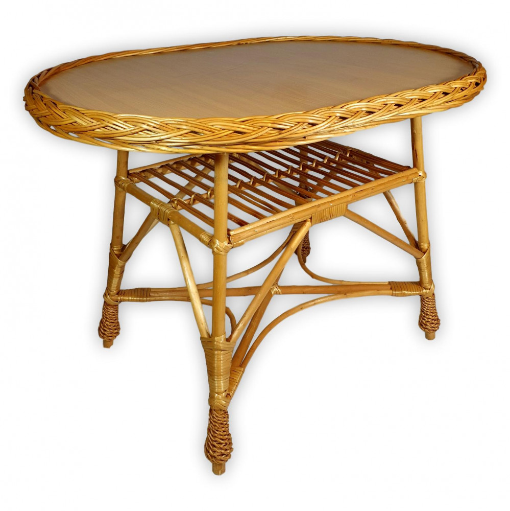Ovális alakú, fonott, vessző asztal.