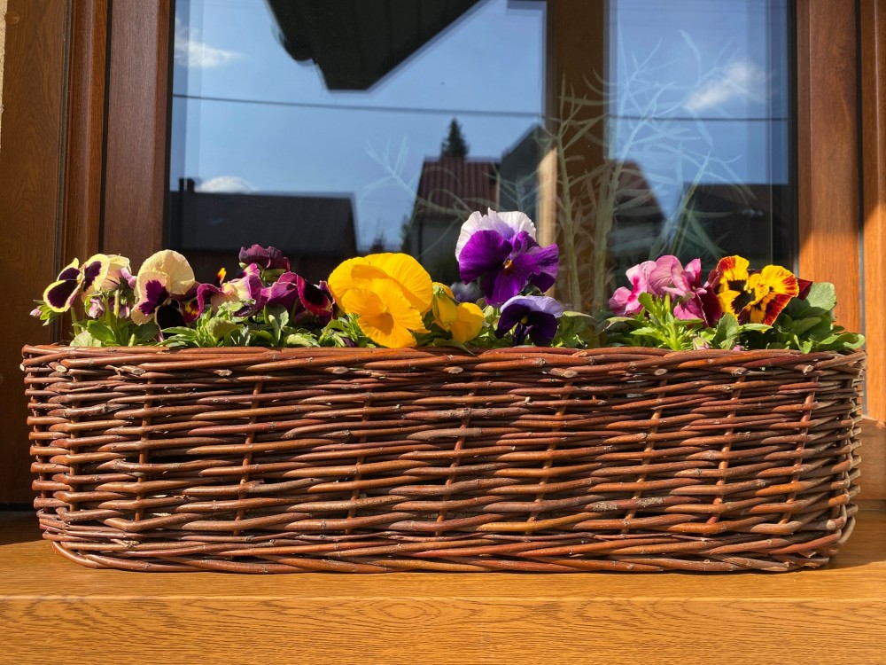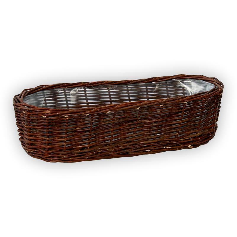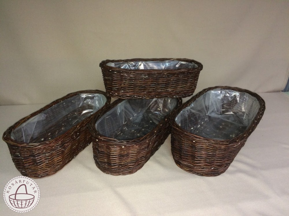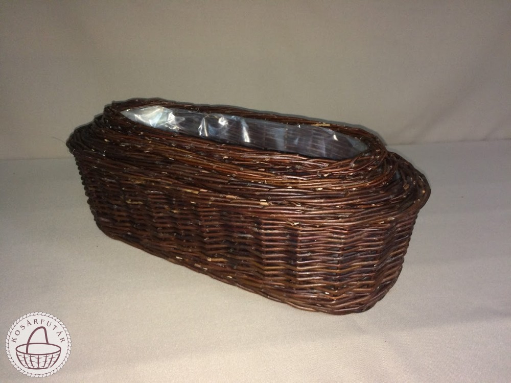 Fonott virágtartó balkonláda,  fóliával bélelve.