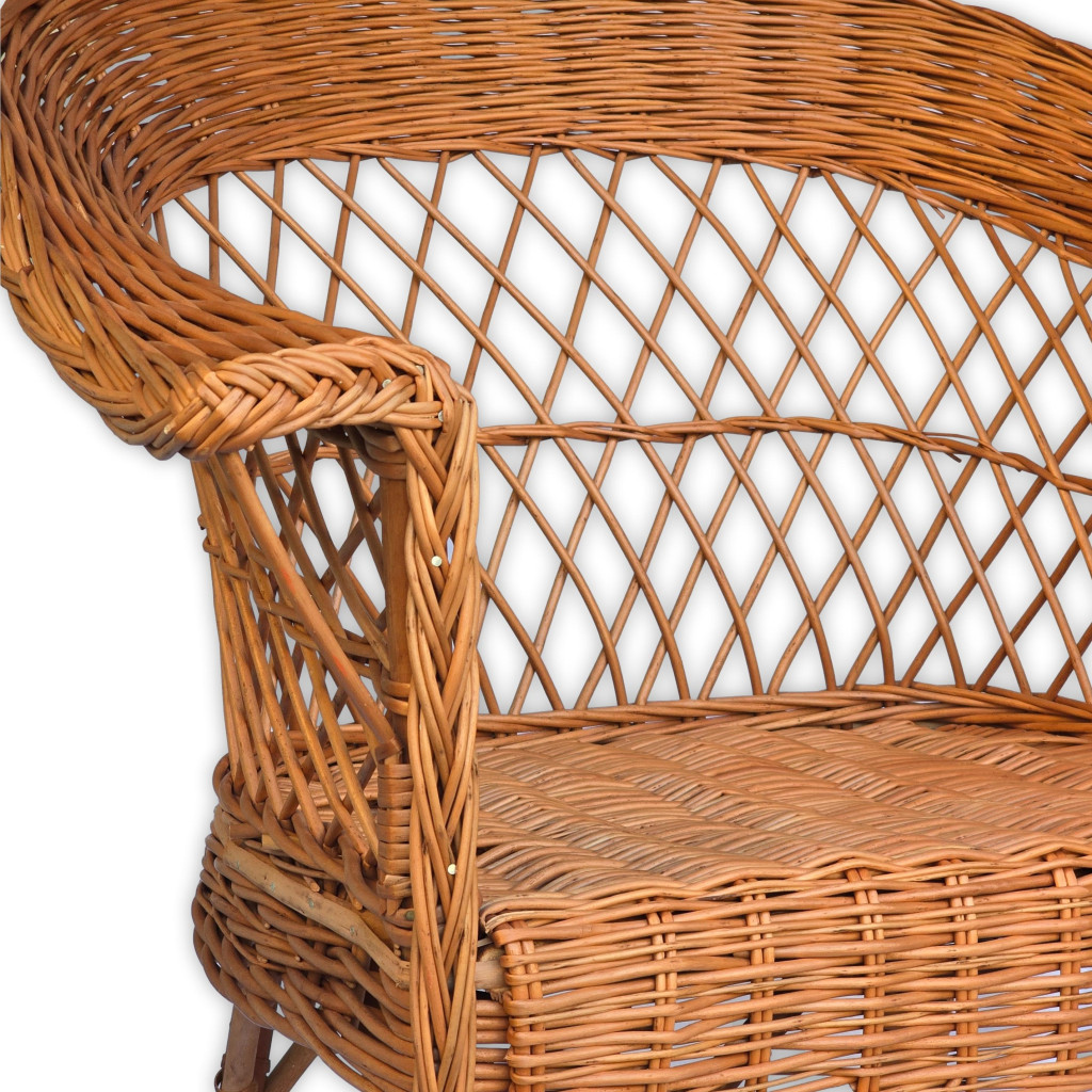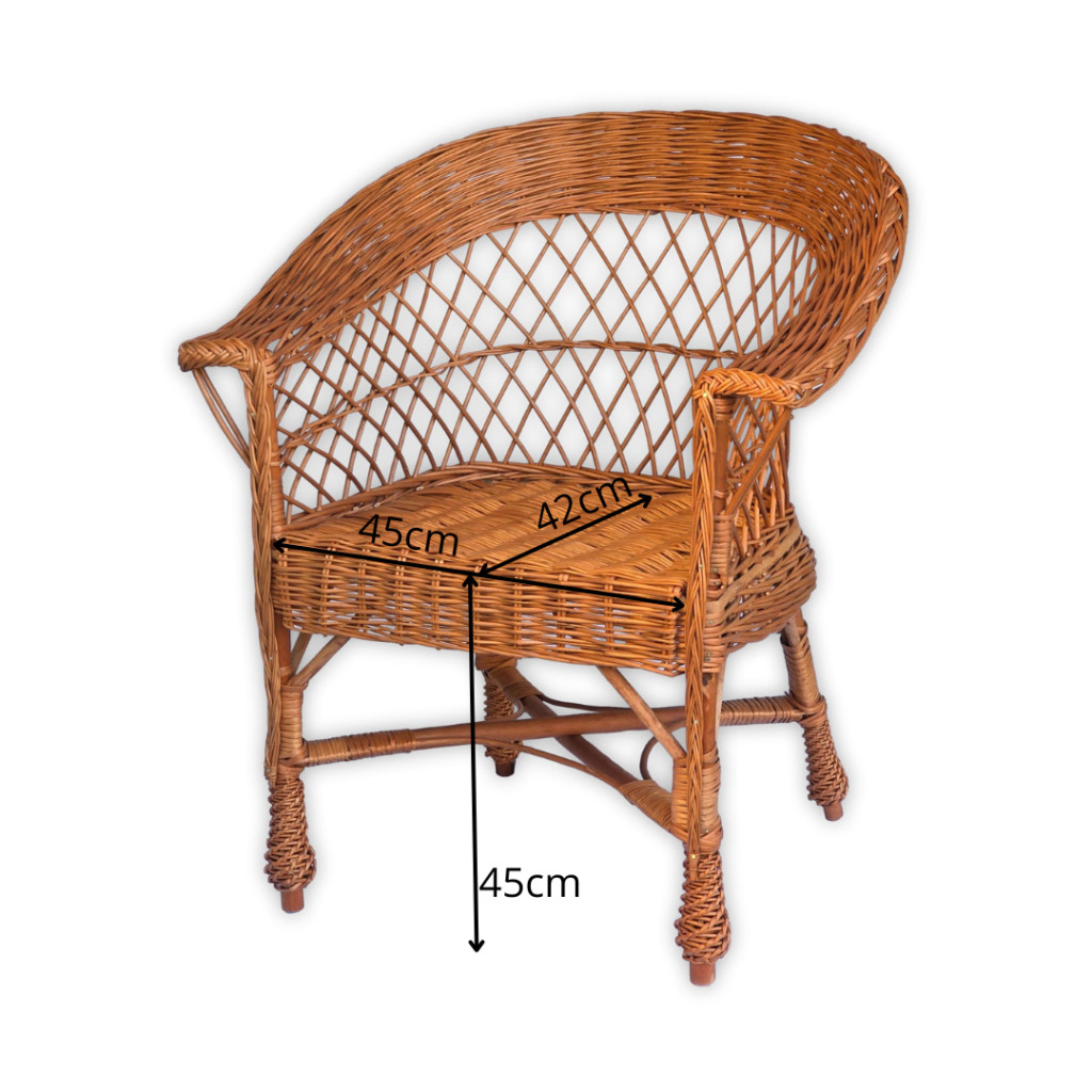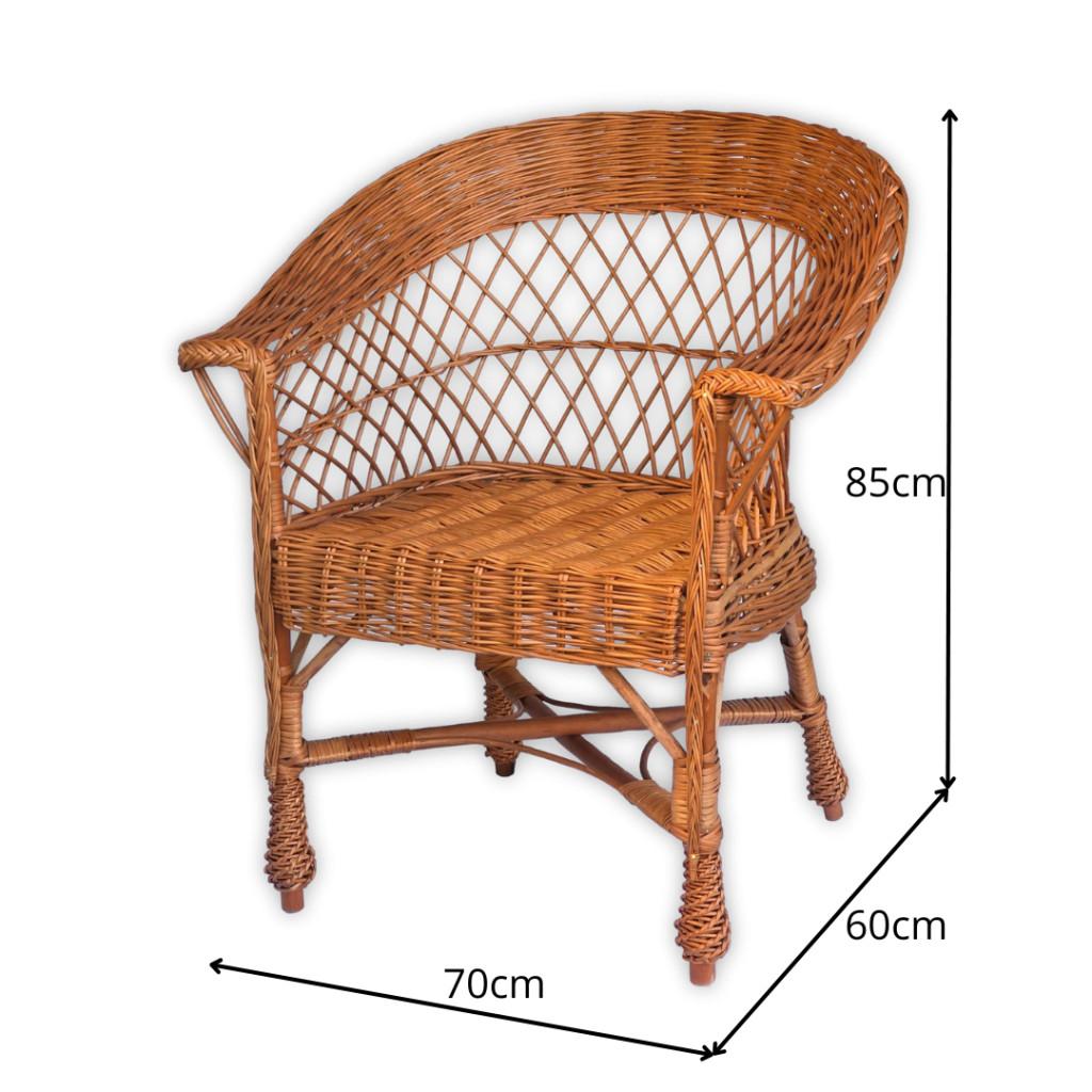 Ez a kézzel készült fonott vessző szék elegáns és időtálló kiegészítője lehet bármely otthonnak vagy terasznak. Kiváló minőségű alapanyagokból készült, így nemcsak esztétikus, hanem tartós és kényelmes is. Klasszikus formája és természetes színe meleg, barátságos hangulatot teremt bármilyen belső térben.