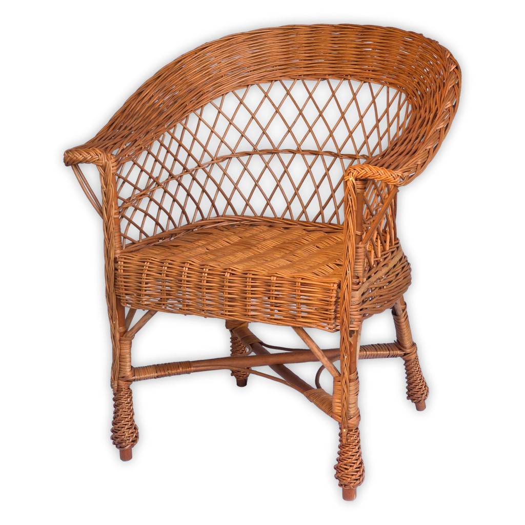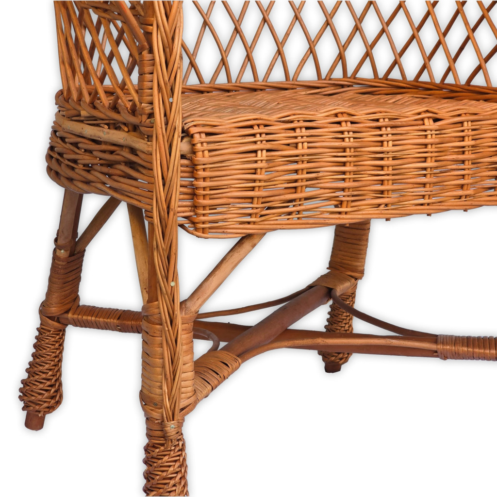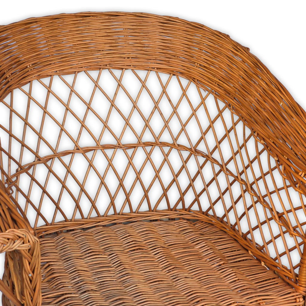 Ez a kézzel készült fonott vessző szék elegáns és időtálló kiegészítője lehet bármely otthonnak vagy terasznak. Kiváló minőségű alapanyagokból készült, így nemcsak esztétikus, hanem tartós és kényelmes is. Klasszikus formája és természetes színe meleg, barátságos hangulatot teremt bármilyen belső térben.