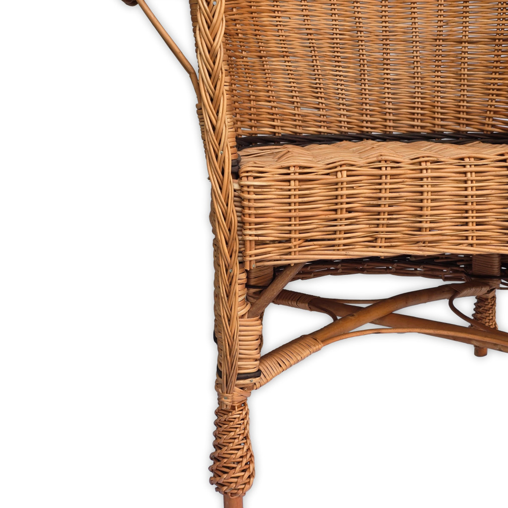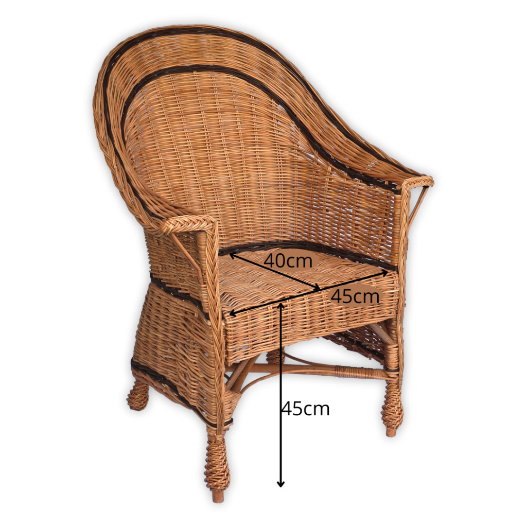 Ez a kézzel készült fonott vessző szék elegáns és időtálló kiegészítője lehet bármely otthonnak vagy terasznak. Kiváló minőségű alapanyagokból készült, így nemcsak esztétikus, hanem tartós és kényelmes is. Klasszikus formája és természetes színe meleg, barátságos hangulatot teremt bármilyen belső térben.
