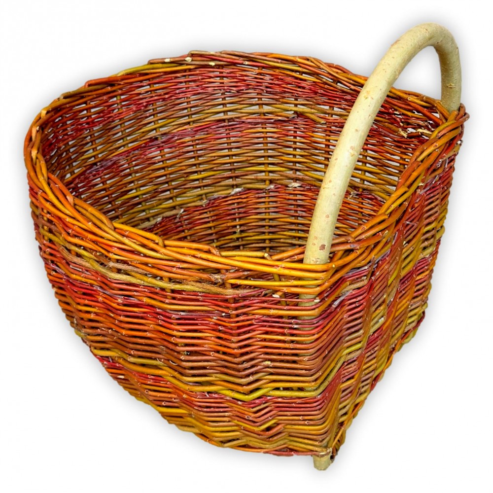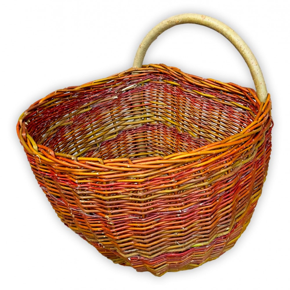 Vesszőből fonott egykezes gazdasági kosár. Alkalmas lehet a ház minden területén, akár a gyümölcsös illetve konyha kertben, betakarításhoz tároláshoz.