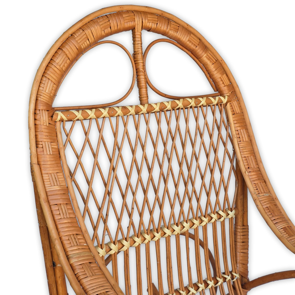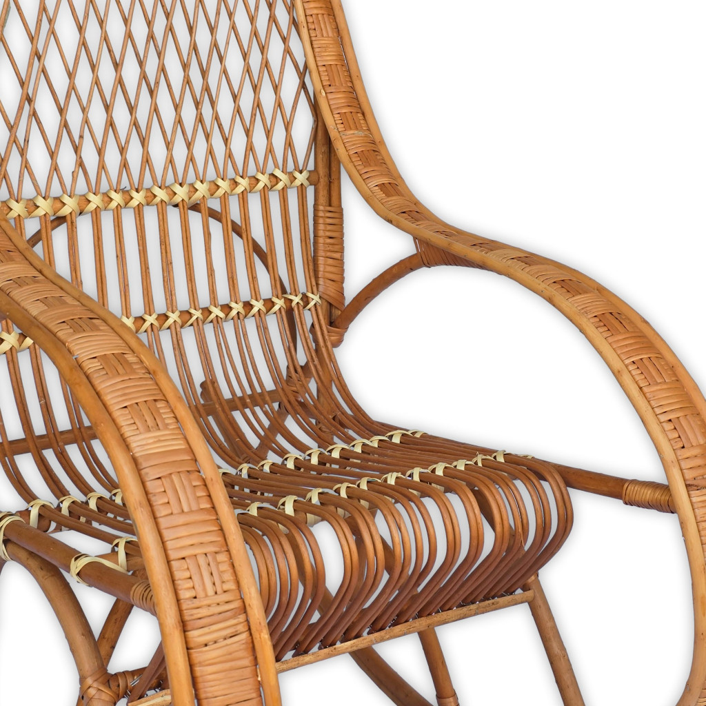 egy igazi klasszikus, amely időtálló eleganciát és kényelmet nyújt. Kézzel készített, természetes anyagokból fonva, ez a hintaszék nemcsak esztétikus, hanem ergonomikus kialakításának köszönhetően tökéletes pihenést biztosít. Könnyed, mégis stabil szerkezete harmonikusan illeszkedik bármilyen térbe, legyen az nappali, terasz vagy egy hangulatos olvasósarok.