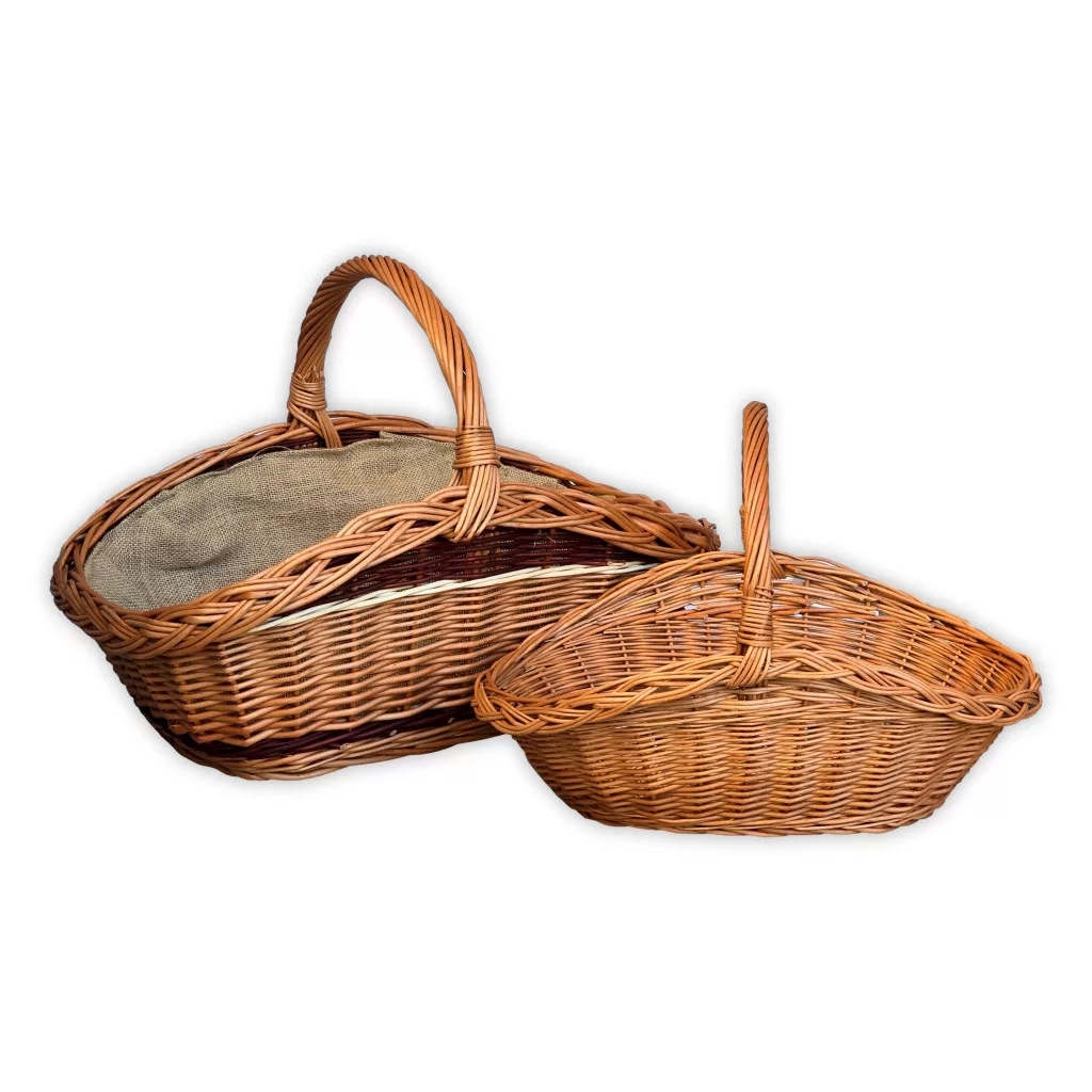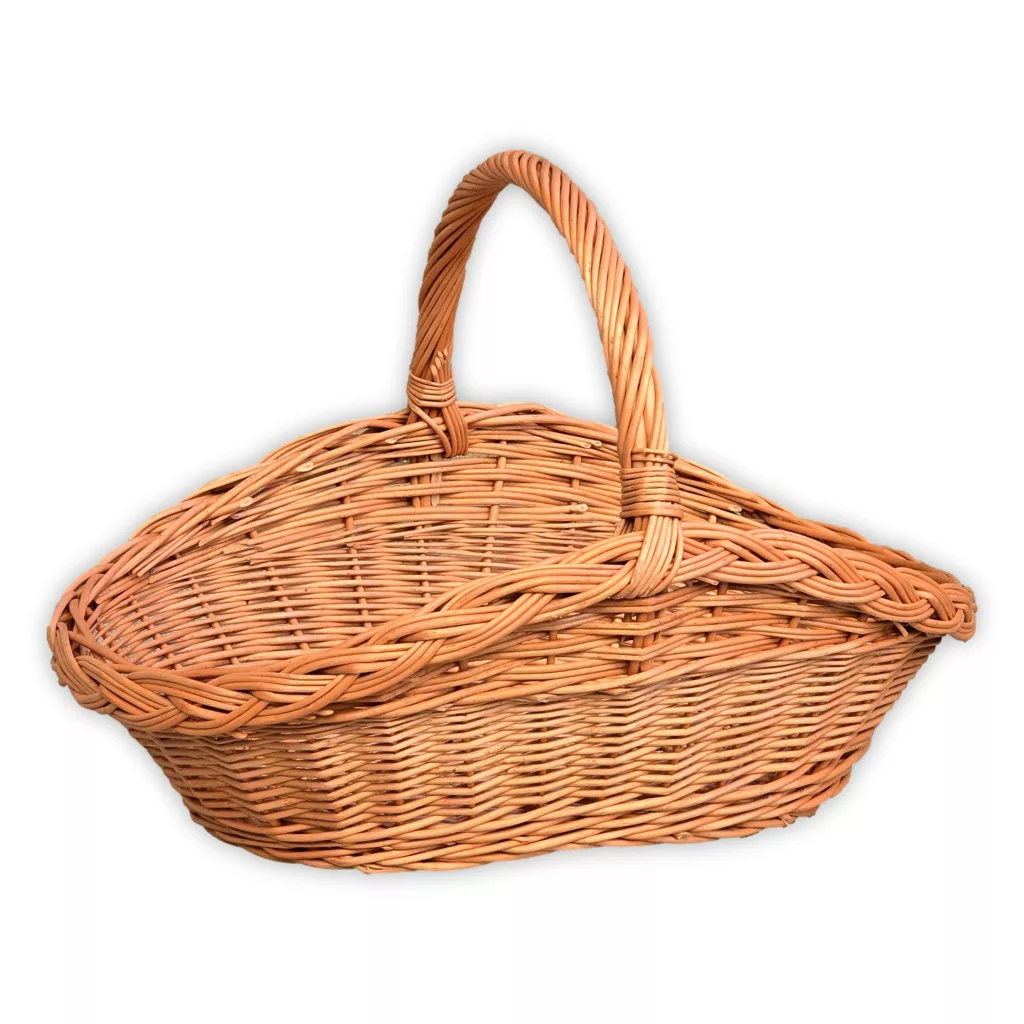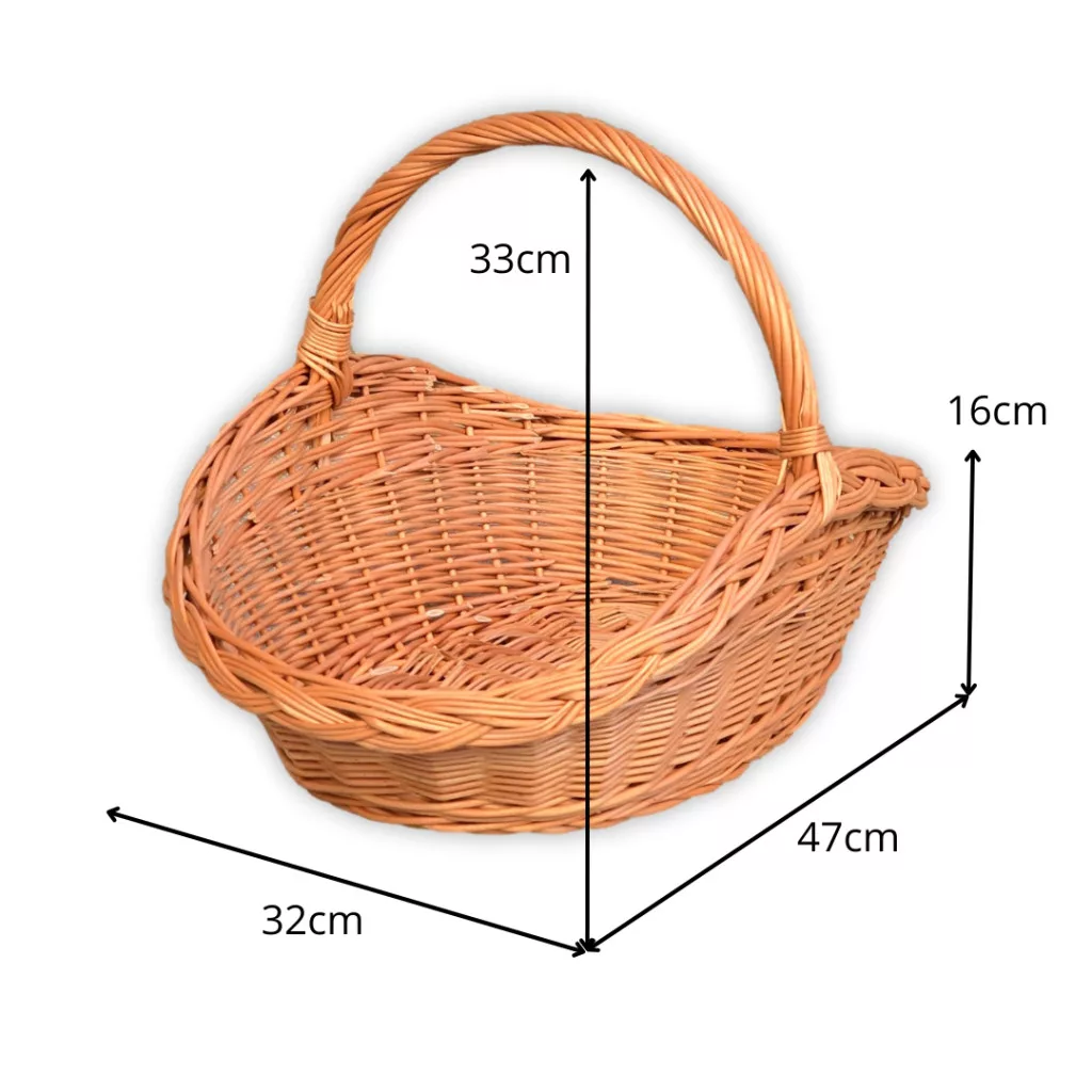 Kandalló kosár természetes vesszőből készült, amely tartósságot és rusztikus megjelenést biztosít. A kosár különlegessége a tetején lévő korona fonás, amely egyedi és dekoratív elemként szolgál. A kosár elsősorban tűzifa tárolására és szállítására szolgál, de esztétikus megjelenése miatt dekorációs elemként is jól használható a kandalló közelében.