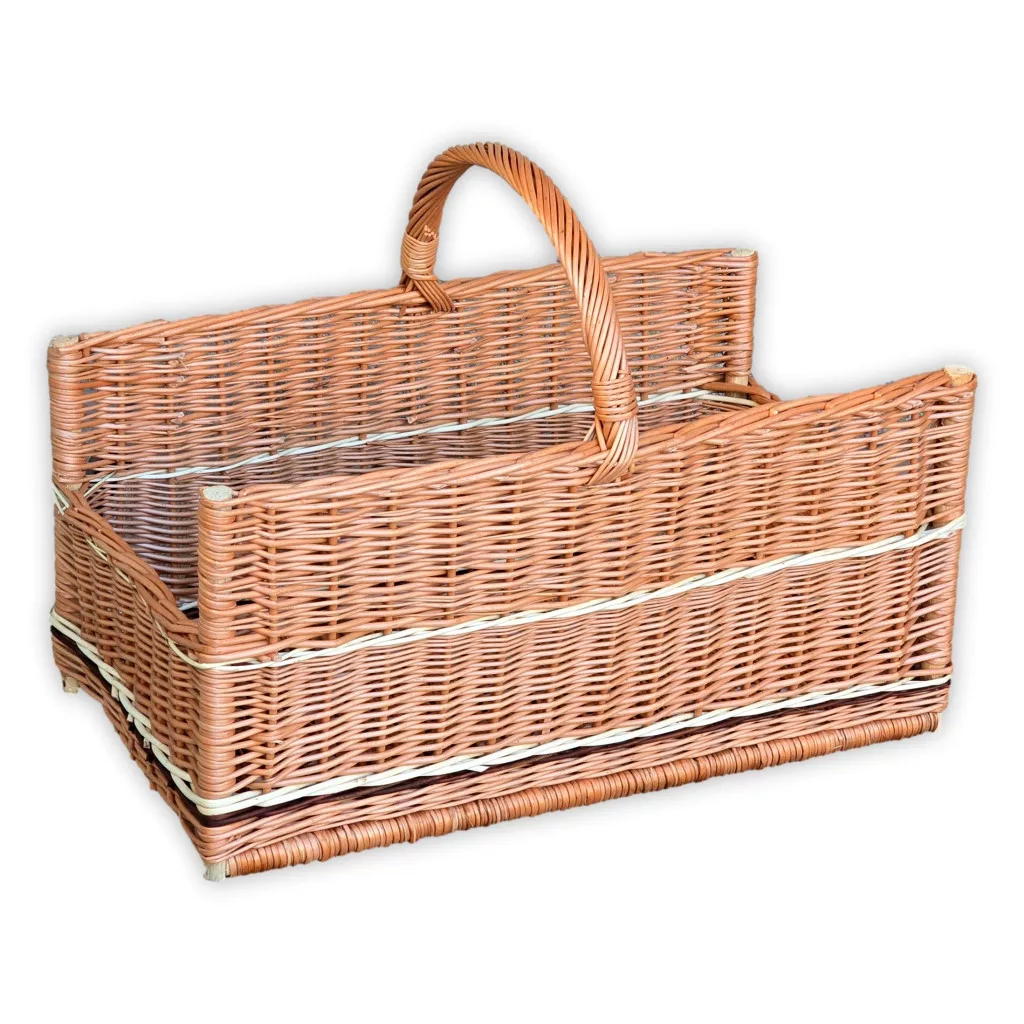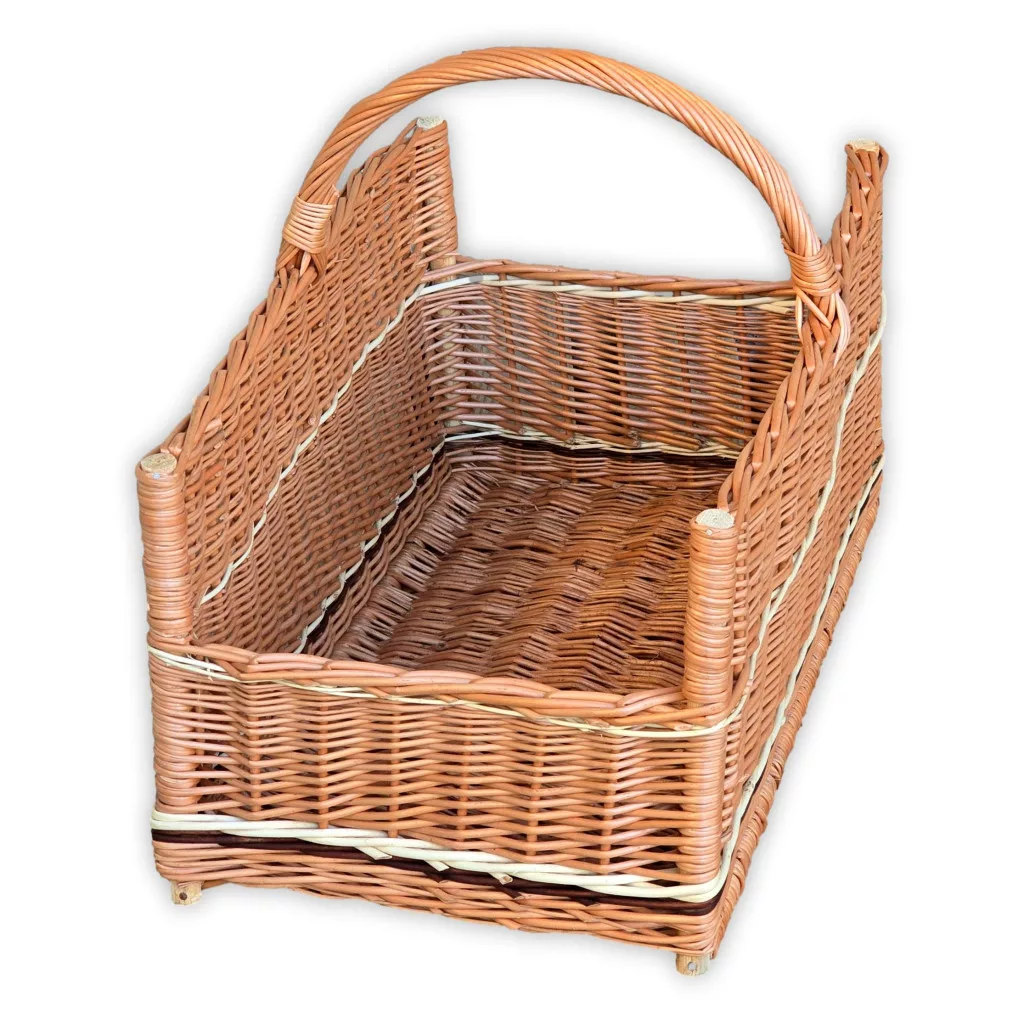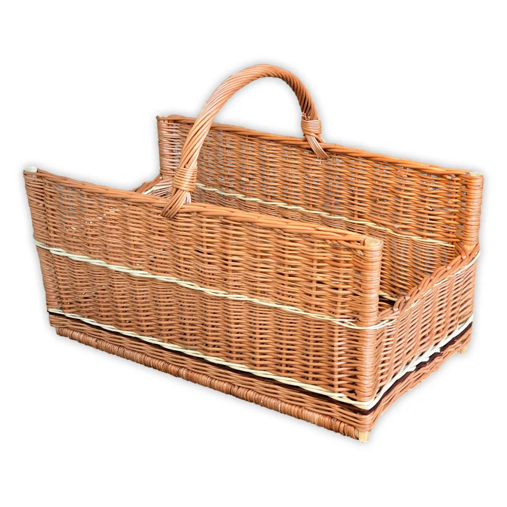 kandalló kosár természetes vesszőből készült, amely tartósságot és rusztikus megjelenést biztosít. Elsősorban tűzifa tárolására és szállítására készült, de esztétikus megjelenése miatt dekorációs elemként is kiváló a kandalló közelében. Megfelelő használat mellett sok évig hűséges társ lehet a hideg téli időszakokban, biztosítva a kényelmes és rendezett tüzelőanyag-tárolást.