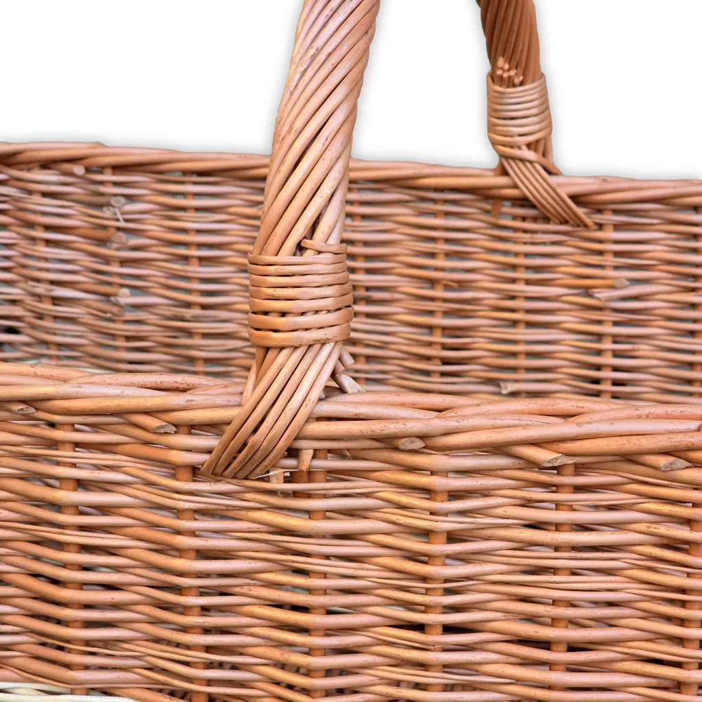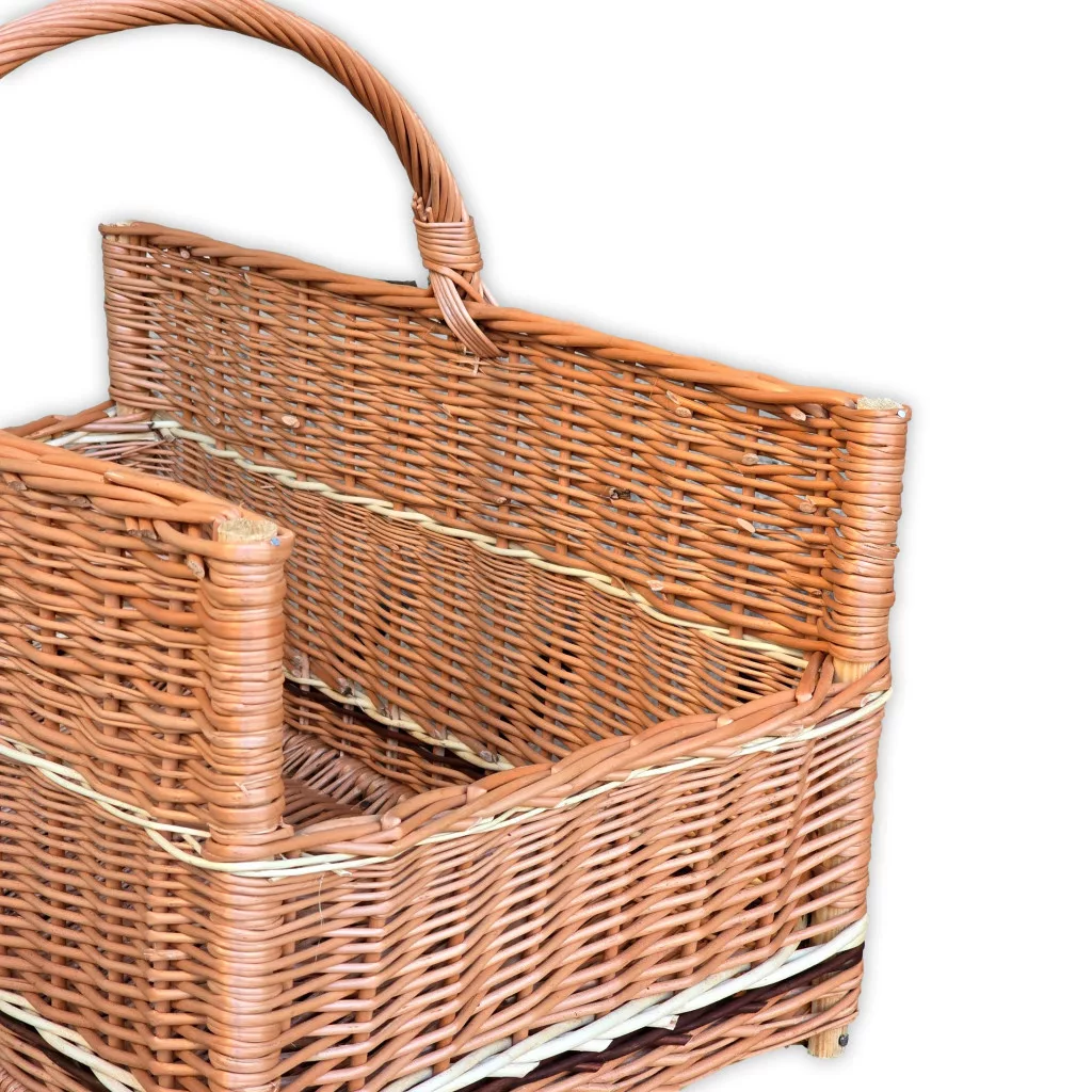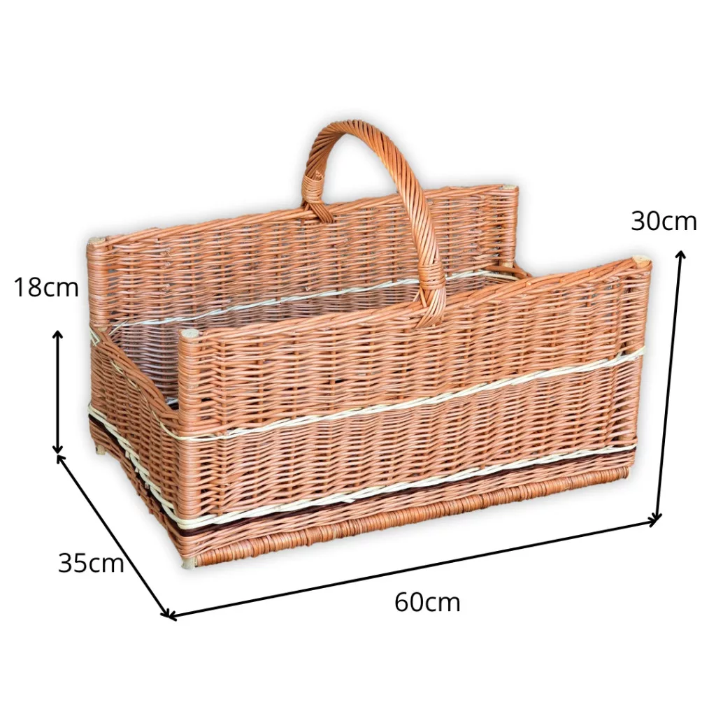 kandalló kosár természetes vesszőből készült, amely tartósságot és rusztikus megjelenést biztosít. Elsősorban tűzifa tárolására és szállítására készült, de esztétikus megjelenése miatt dekorációs elemként is kiváló a kandalló közelében. Megfelelő használat mellett sok évig hűséges társ lehet a hideg téli időszakokban, biztosítva a kényelmes és rendezett tüzelőanyag-tárolást.