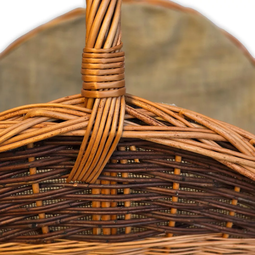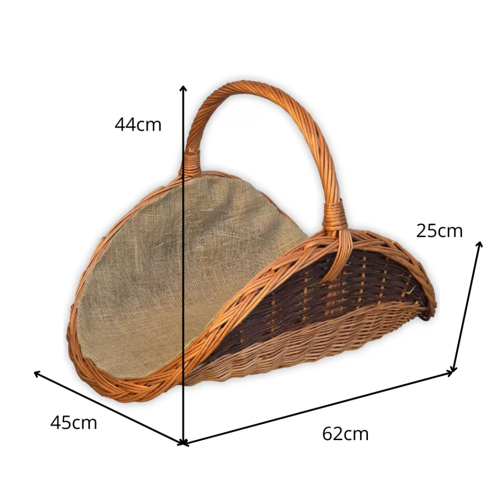 Kandalló kosár természetes vesszőből készült, amely tartósságot és rusztikus megjelenést biztosít. A kosár különlegessége a tetején lévő korona fonás, amely egyedi és dekoratív elemként szolgál. A belseje vászon anyaggal bélelt, amely megóvja a kosarat a szennyeződésektől. A kosár elsősorban tűzifa tárolására és szállítására szolgál, de esztétikus megjelenése miatt dekorációs elemként is jól használható a kandalló közelében.
