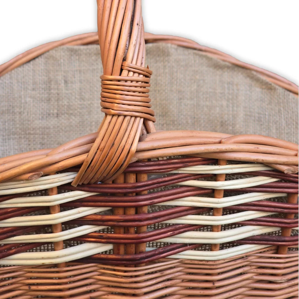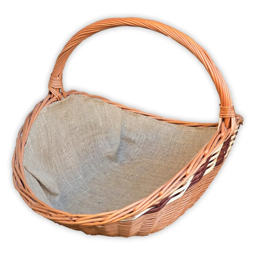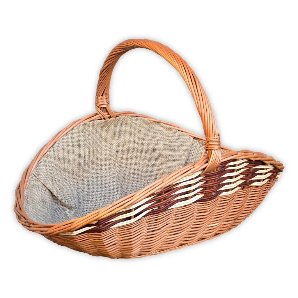 Kandalló kosár természetes vesszőből készült, amely tartósságot és rusztikus megjelenést biztosít. A belseje vászon anyaggal bélelt, amely megóvja a kosarat a szennyeződésektől. A kosár elsősorban tűzifa tárolására és szállítására szolgál, de esztétikus megjelenése miatt dekorációs elemként is jól használható a kandalló közelében.