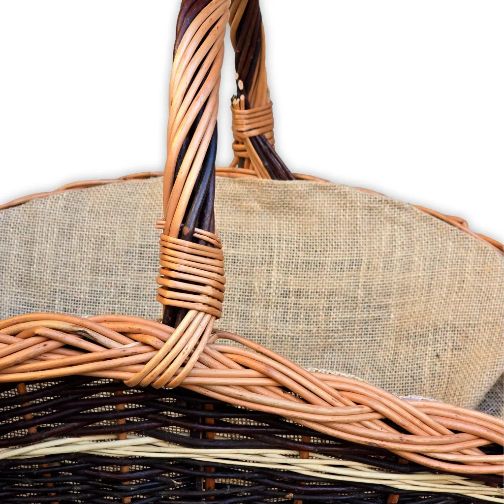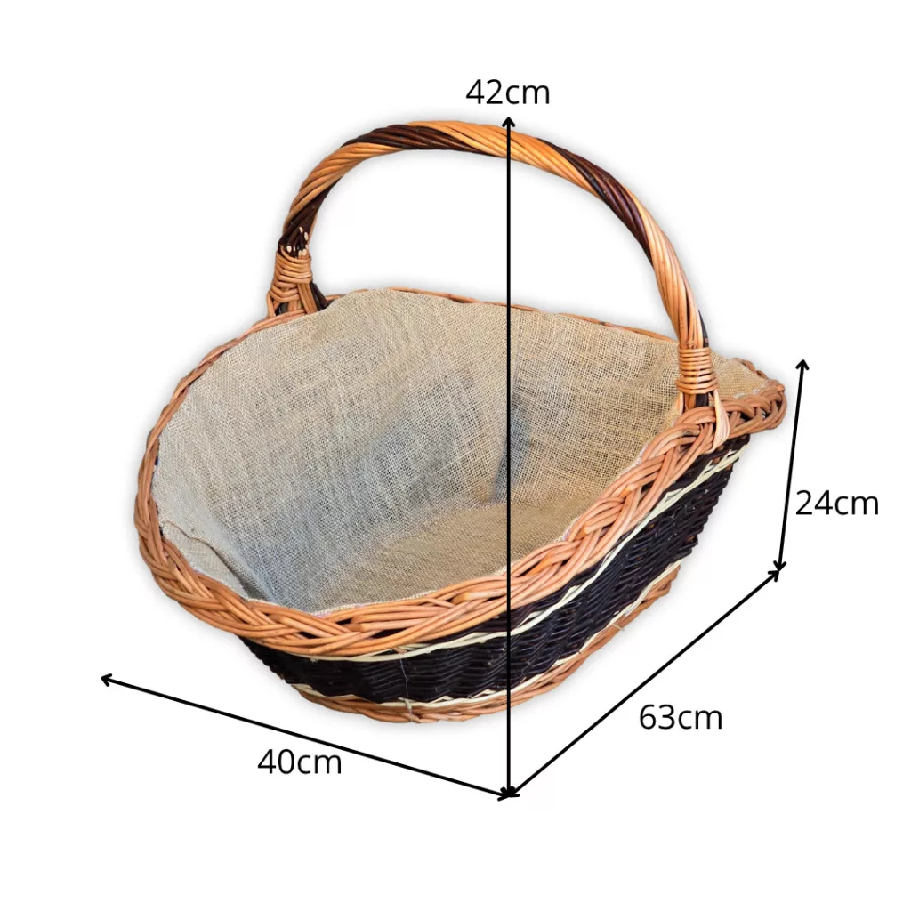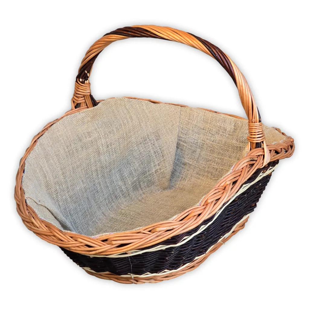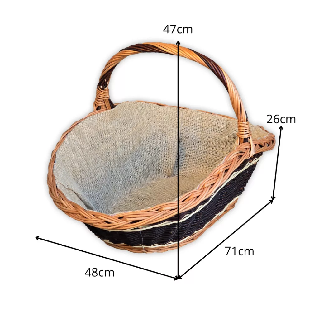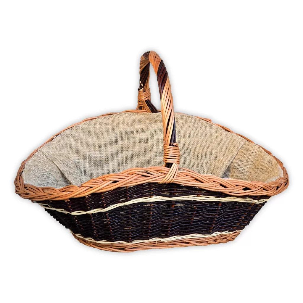 Kandalló kosár természetes vesszőből készült, amely tartósságot és rusztikus megjelenést biztosít. A kosár különlegessége a tetején lévő korona fonás, amely egyedi és dekoratív elemként szolgál. A belseje vászon anyaggal bélelt, amely megóvja a kosarat a szennyeződésektől. A kosár elsősorban tűzifa tárolására és szállítására szolgál, de dekorációs elemként is jól használható a kandalló közelében. Megfelelő használat mellett sok évig hűséges társ lehet a hideg téli időszakokban, biztosítva a kényelmes és rendezett tüzelőanyag-tárolást.
