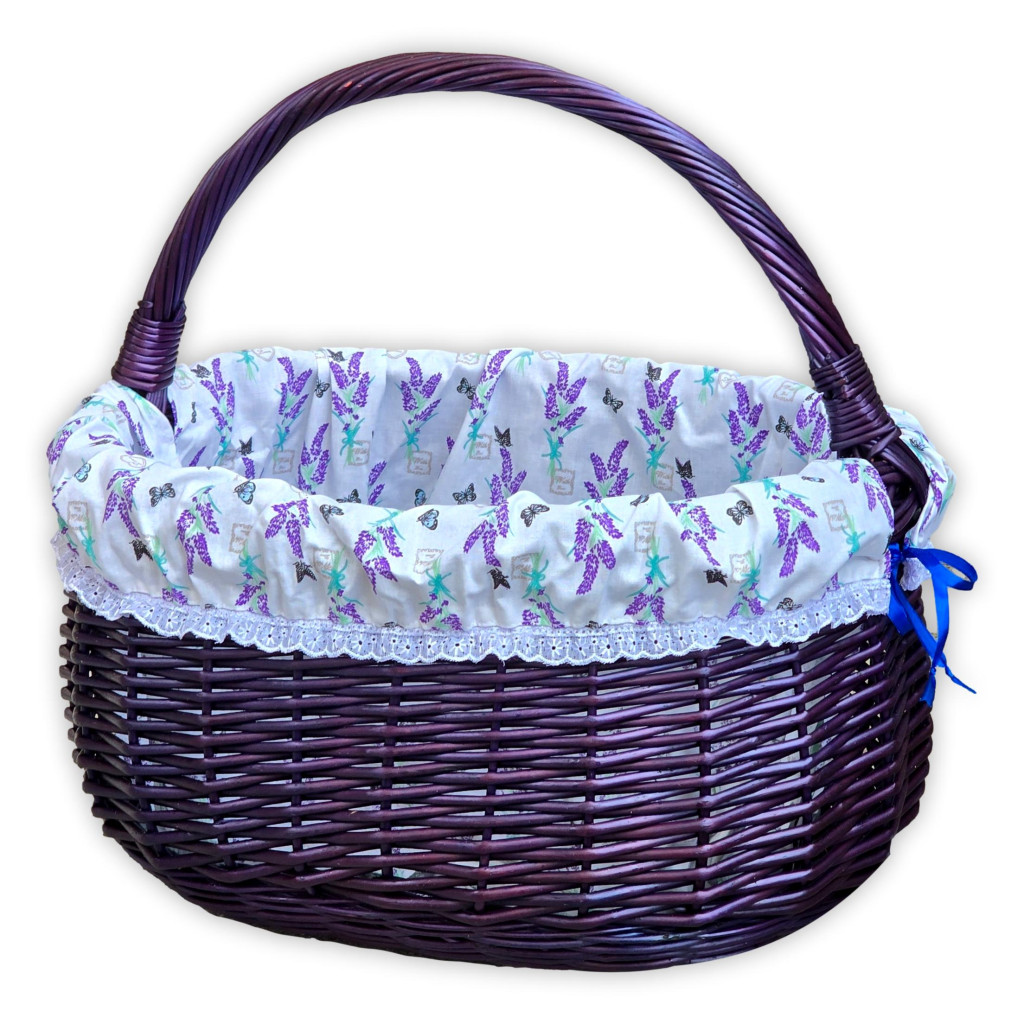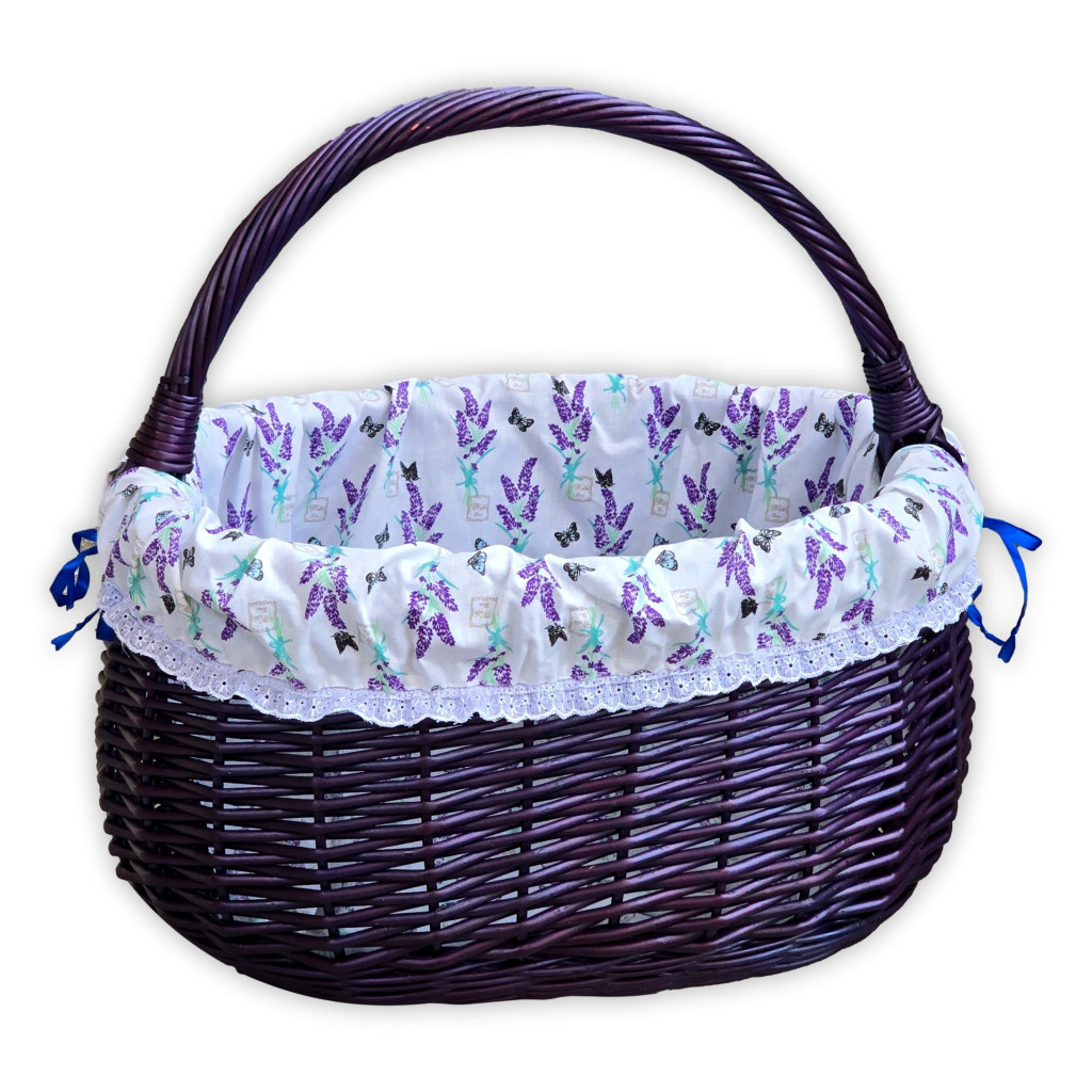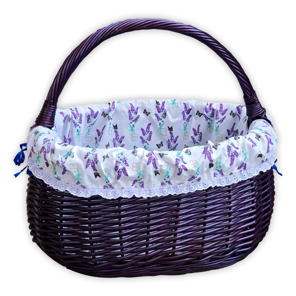 Lila bevásárló kosár levendula mintás béléssel.