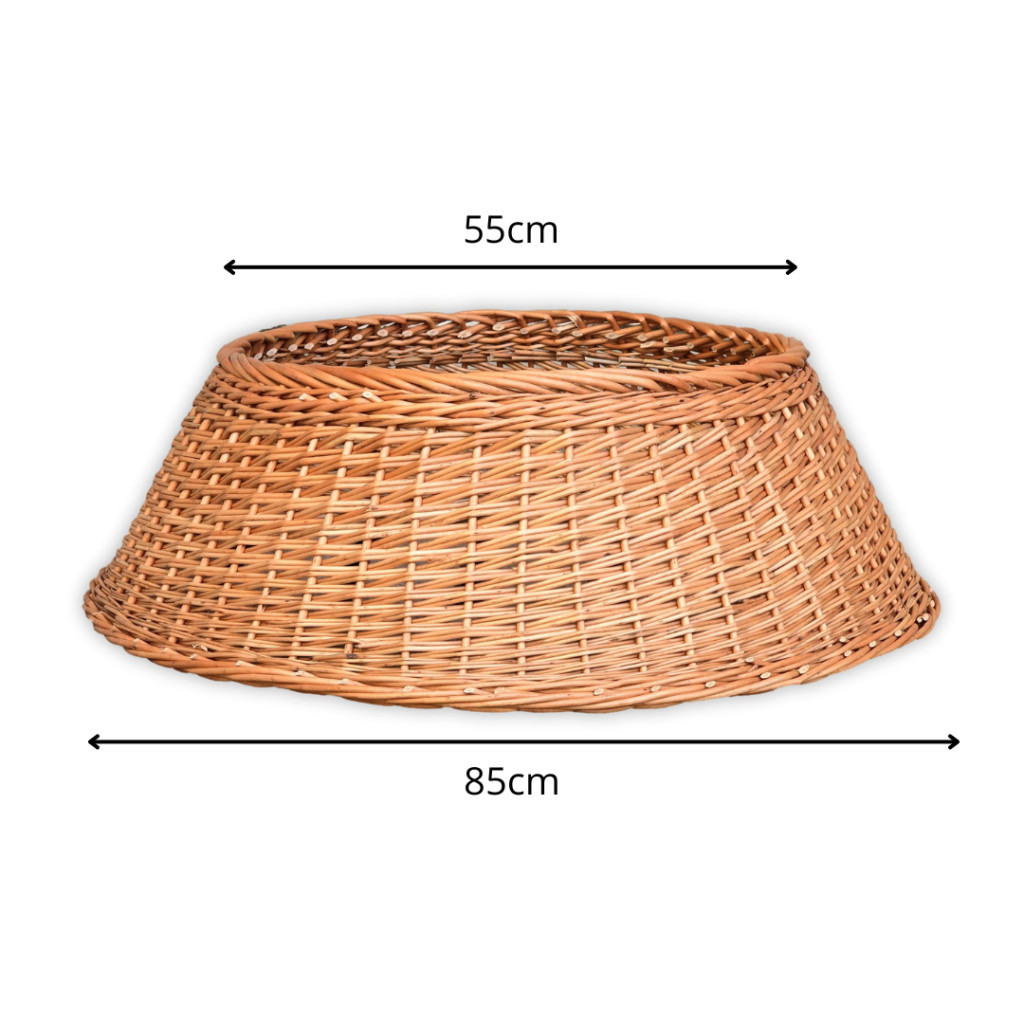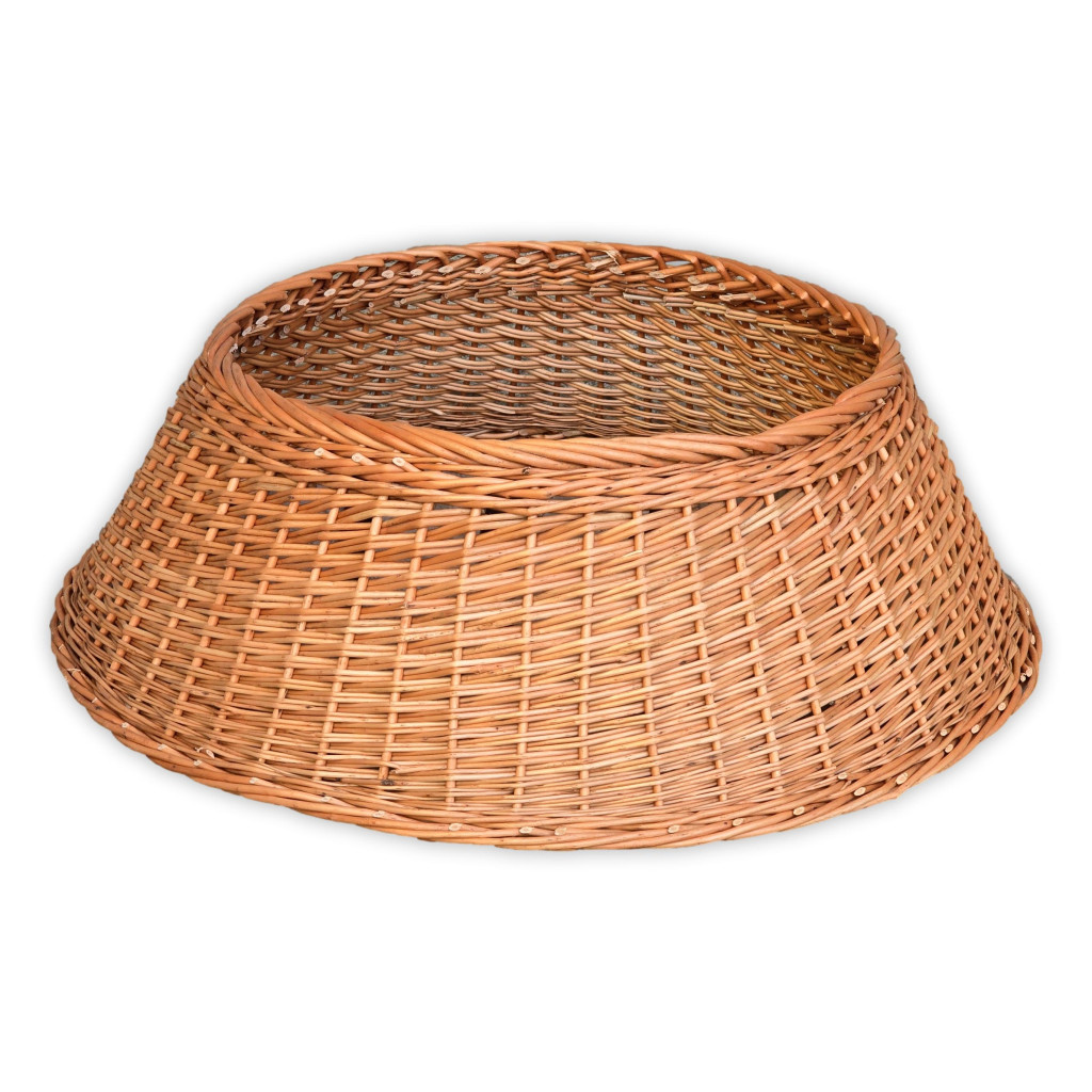 Karácsonyfa talp takaró vesszőből, amely nemcsak praktikus, hanem természetes dísze is lehet otthonának a karácsonyi időszakban.