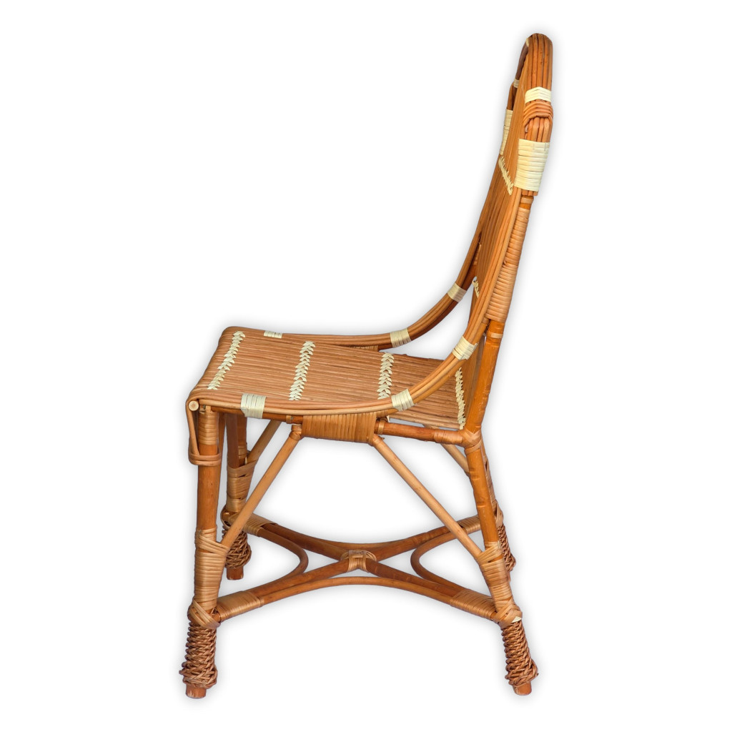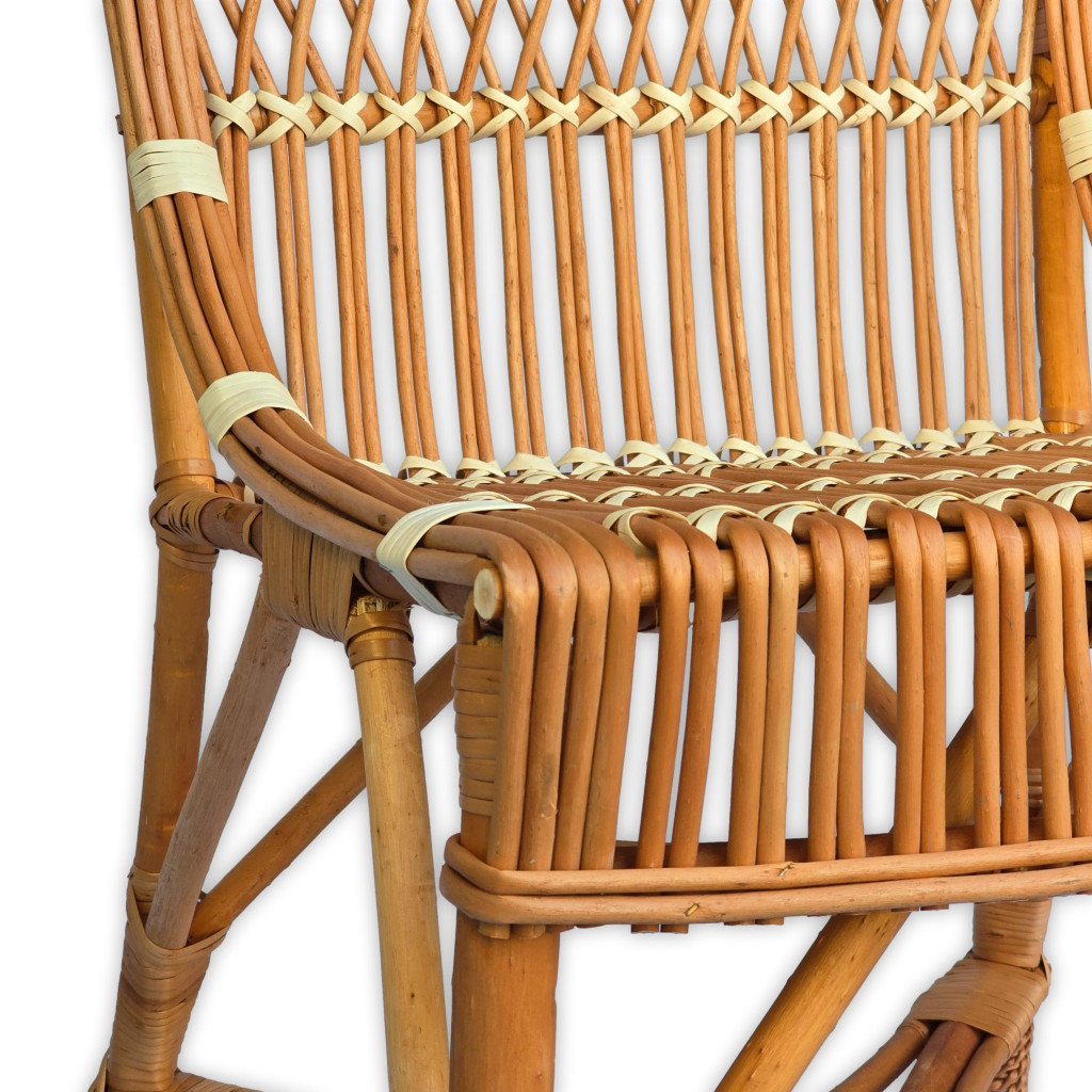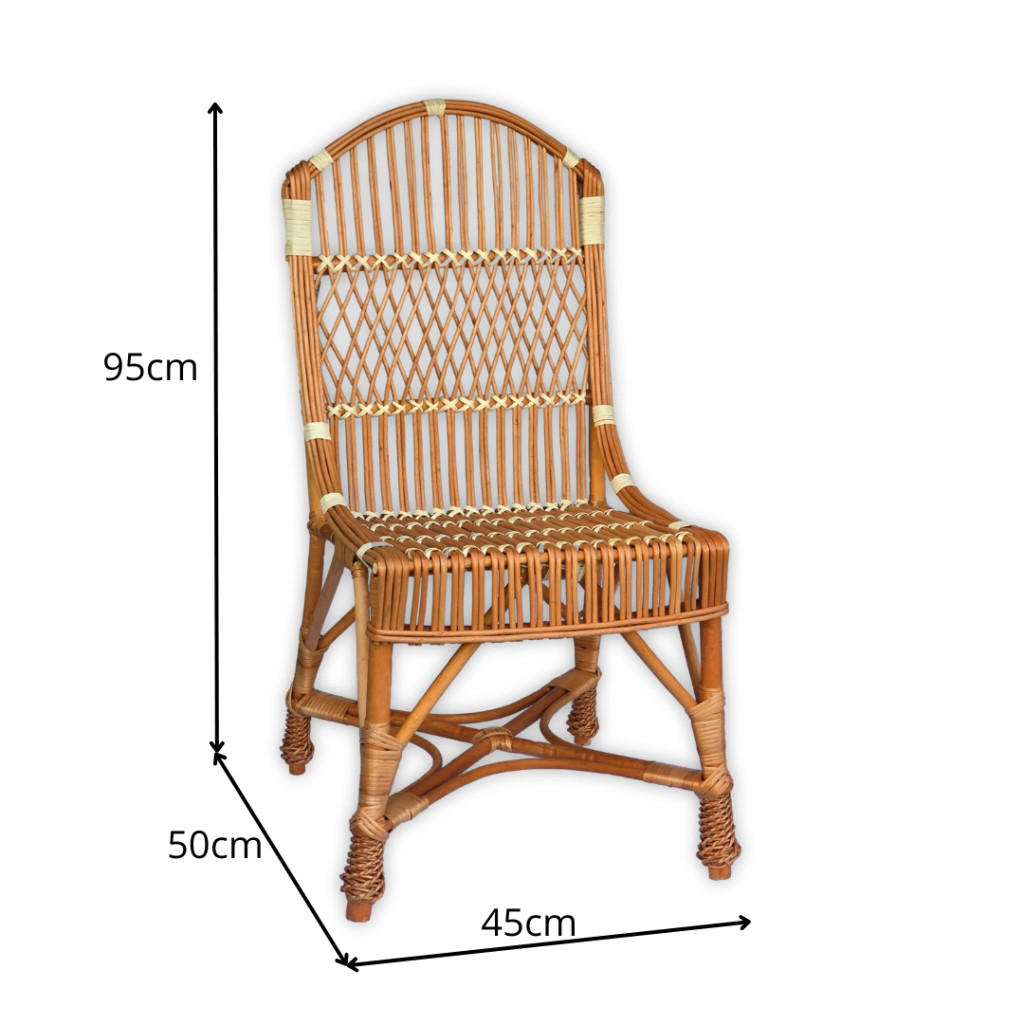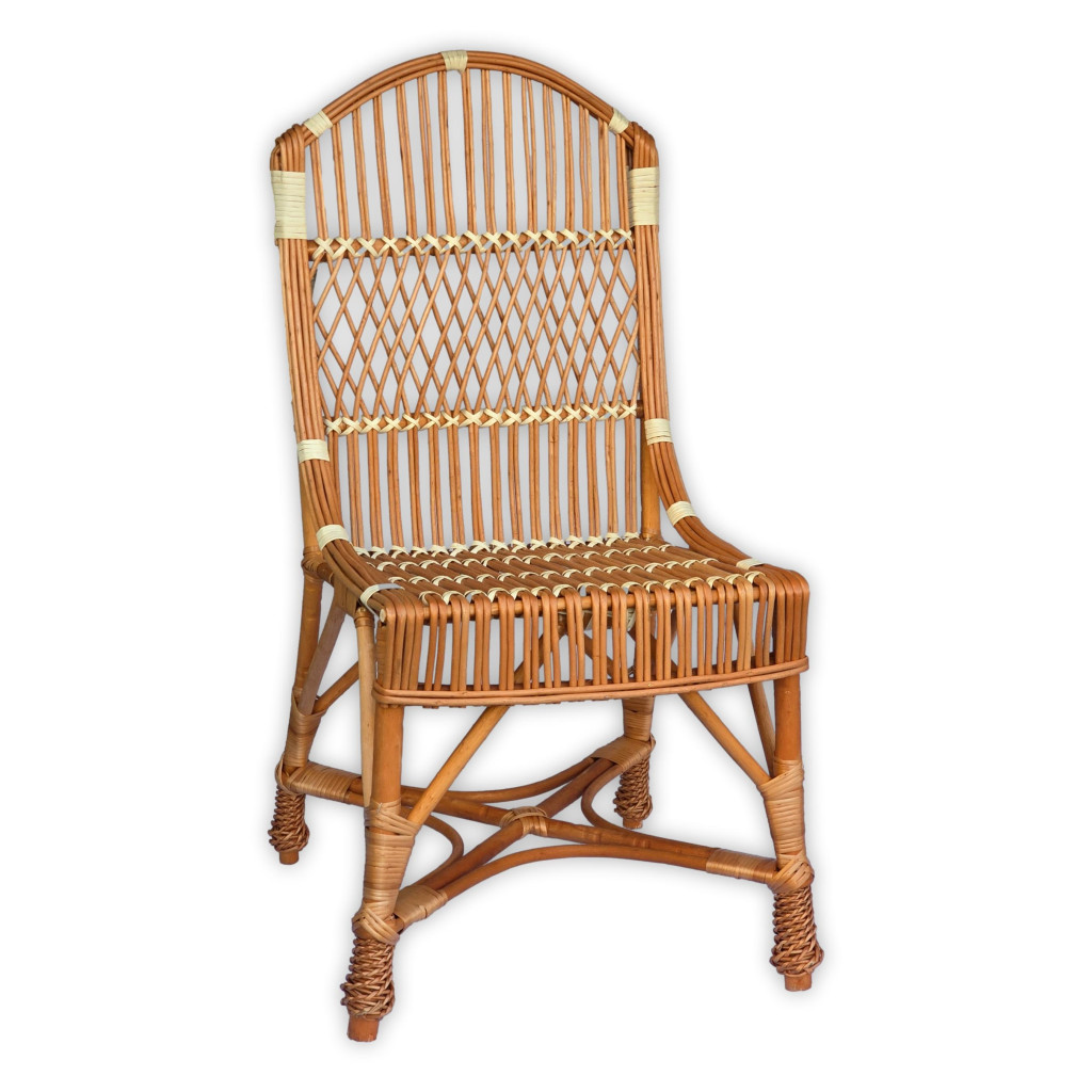 Ez a kézzel készült fonott vessző szék elegáns és időtálló kiegészítője lehet bármely otthonnak vagy terasznak. Kiváló minőségű alapanyagokból készült, így nemcsak esztétikus, hanem tartós és kényelmes is. Klasszikus formája és természetes színe meleg, barátságos hangulatot teremt bármilyen belső térben.