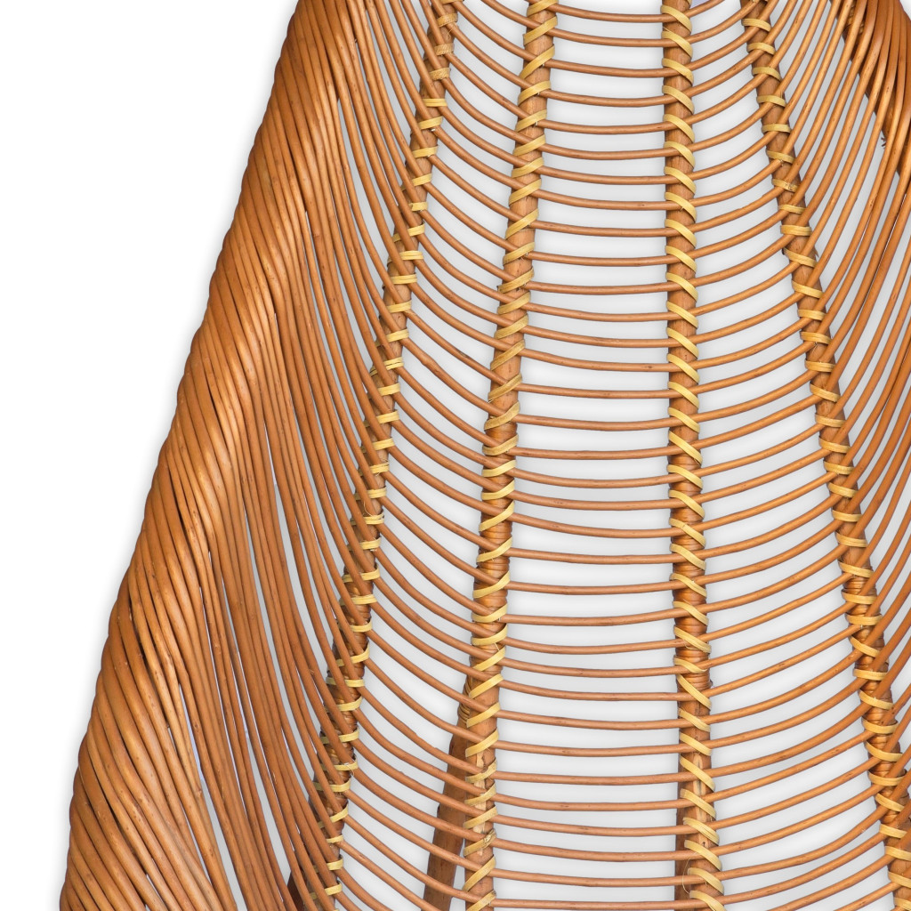 Ez a kagyló formájú, kézzel készített vesszőből fonott szék a tökéletes kényelem és stílus megtestesítője. Egyedi formatervezésének és mély ülőfelületének köszönhetően a szék teljes fotel élményt nyújt. Kiváló választás nappaliba, fedett teraszra vagy olvasósarokba, ahol a kényelem és a természetes anyagok harmonikus találkozása értékelendő.