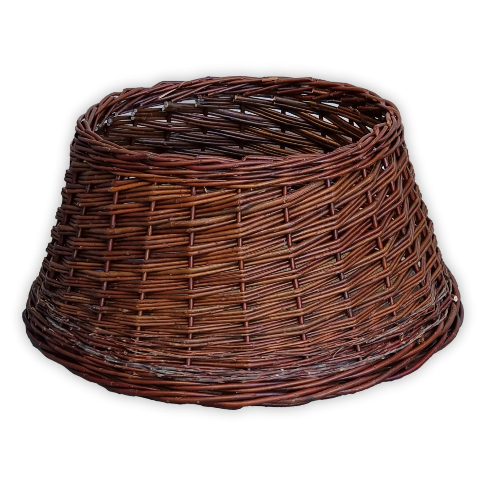 Karácsonyfa talp takaró hántolatlan vesszőből, amely nemcsak praktikus, hanem természetes dísze is lehet otthonának a karácsonyi időszakban.