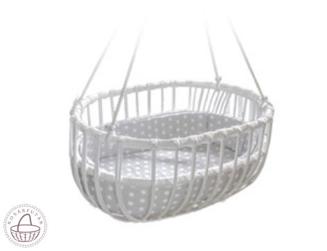 Vesszőből kézzel készült retró stílusú bölcső gyerekeknek. Visszahozza a régi idők emlékeit amikor még nagyanyáink ilyen kiságyban altatták gyerekeiket. Nagy mérete és ovális formája kényelmet biztosít minden kisded számára.