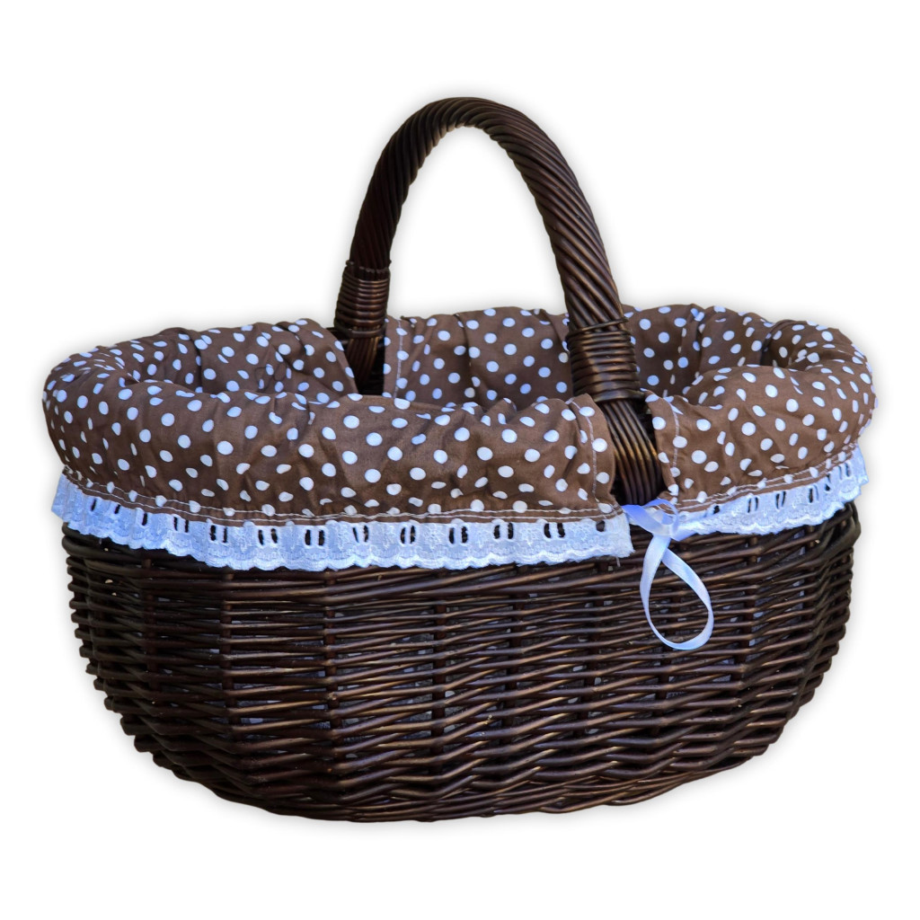 Brauner Einkaufskorb mit gepunktetem Innenfutter