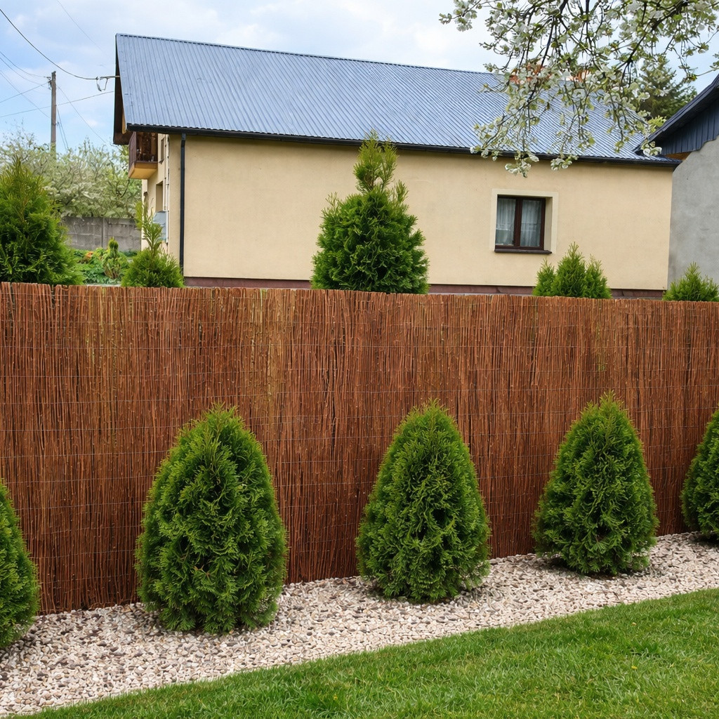 Weidenrollos können im Garten oder auf dem Balkon als dekoratives Gestaltungselement eingesetzt werden und bieten Schutz vor unerwünschten Blicken und Wind.