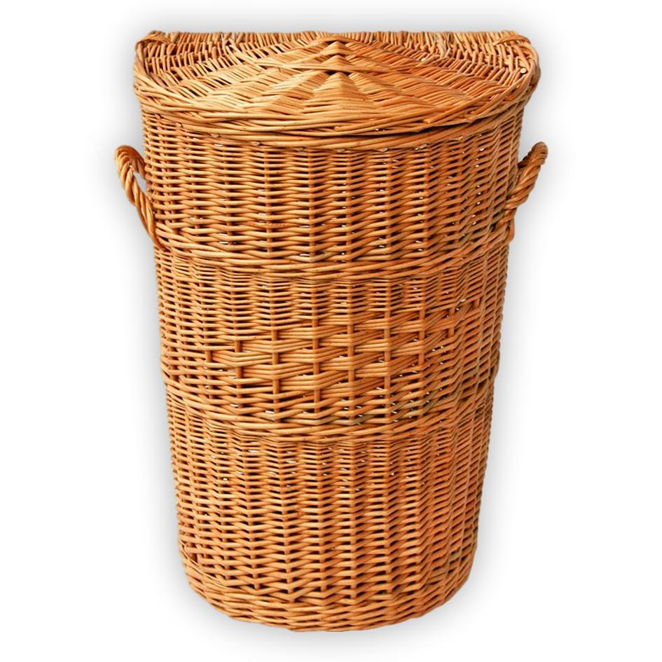 Halbkreisförmiger Wäschekorb mit Griffen an beiden Seiten.