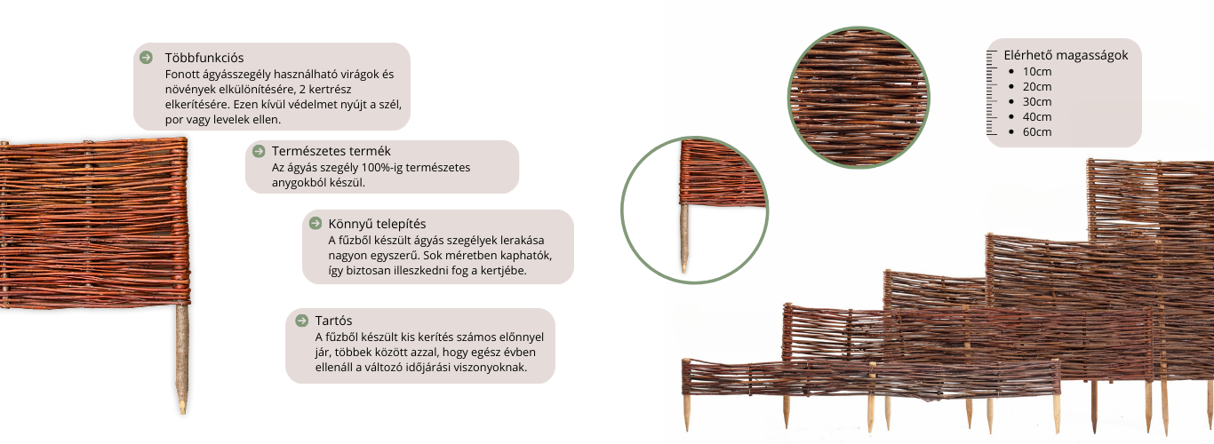 Dieser natürliche, aus roter Weide geflochtene Gartenrand ist die ideale Wahl für einen ordentlichen und ästhetisch ansprechenden Garten. Er verhindert, dass Holzmulch und andere Bodenabdeckungen verstreut werden, sodass alles sauber in den Beeten bleibt. Außerdem ist er hervorragend geeignet, um verschiedene Pflanzenarten voneinander zu trennen und den Garten leicht in Ordnung zu halten.