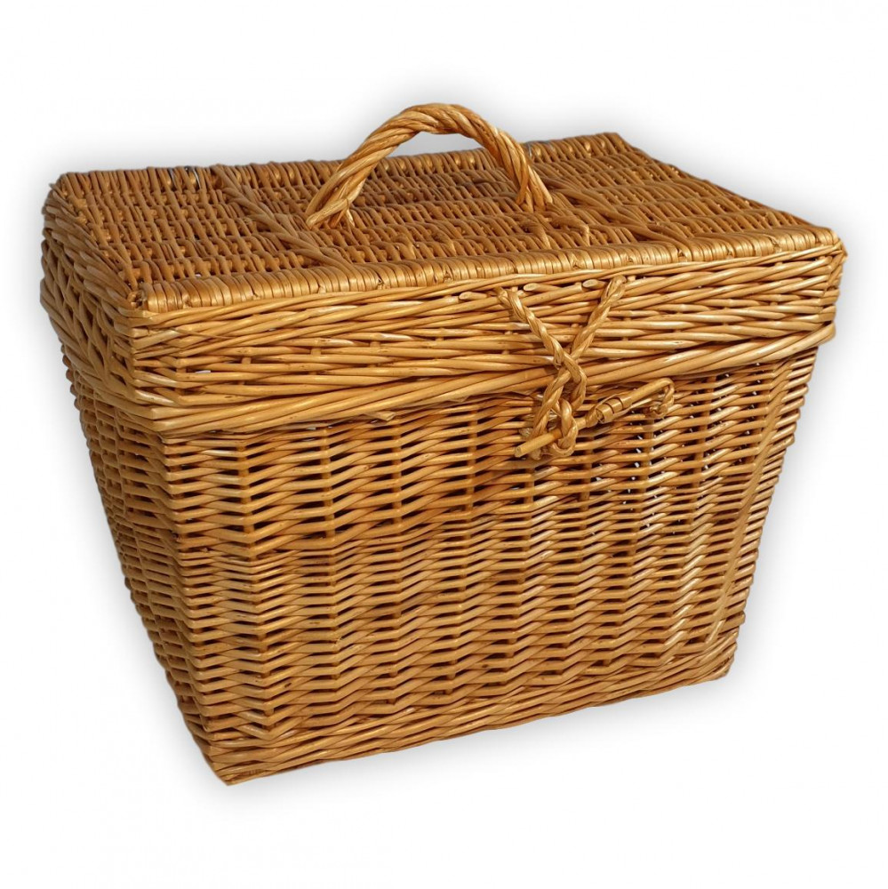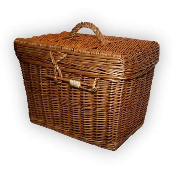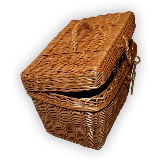 Nähkästchen aus Weidengeflecht zur Aufbewahrung von Kleinigkeiten aller Art. Mit Metallscharnieren und Weidenschloss.