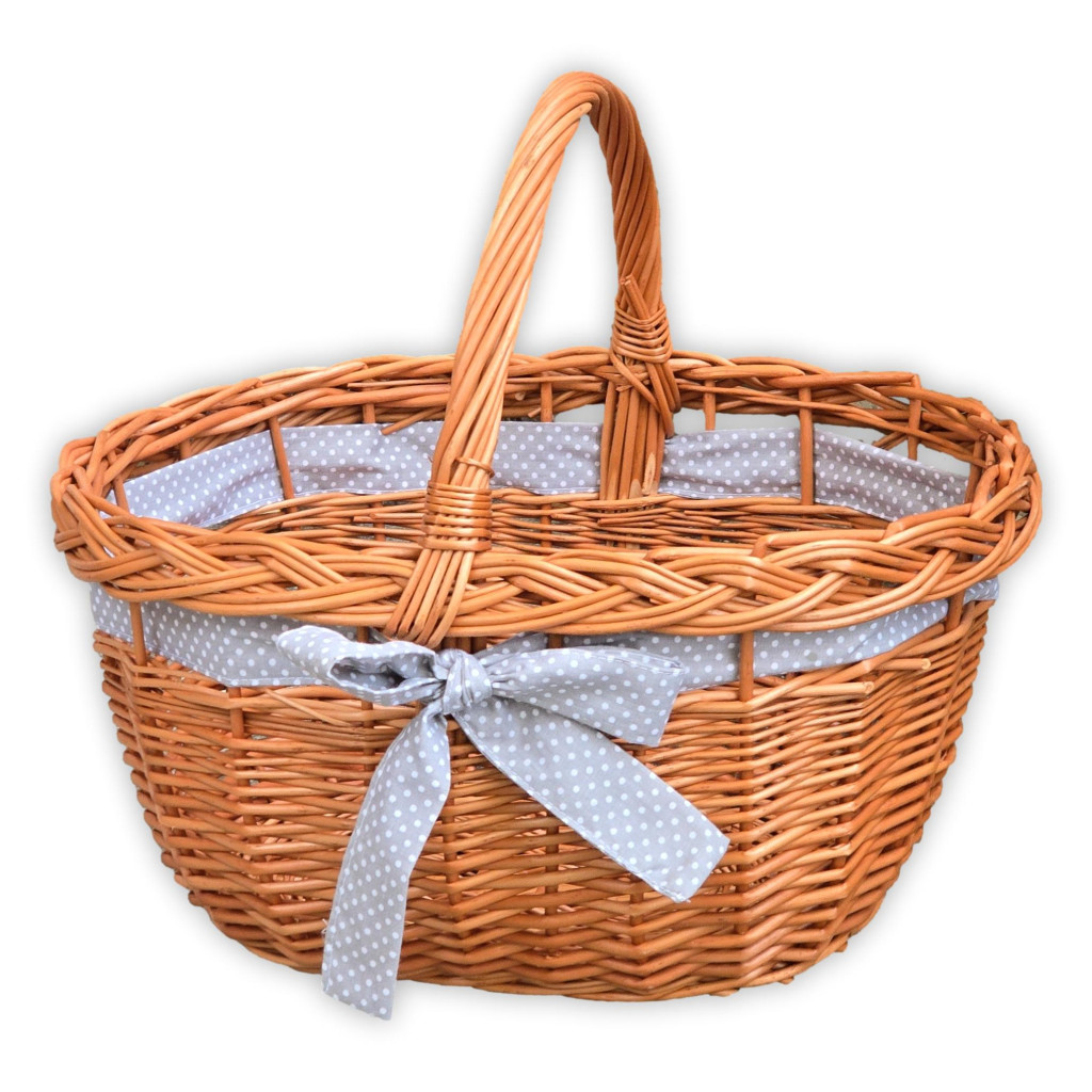 Einkaufskorb mit Zierband (natur und weiß)