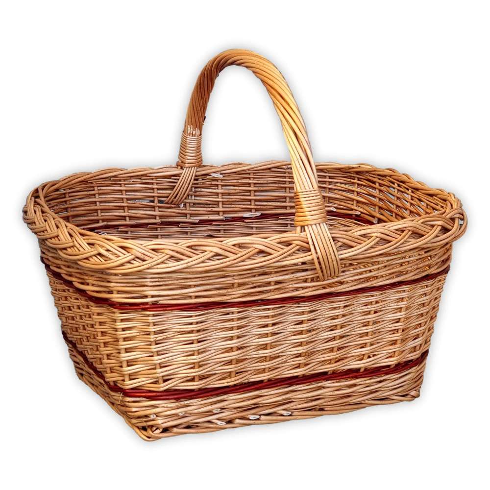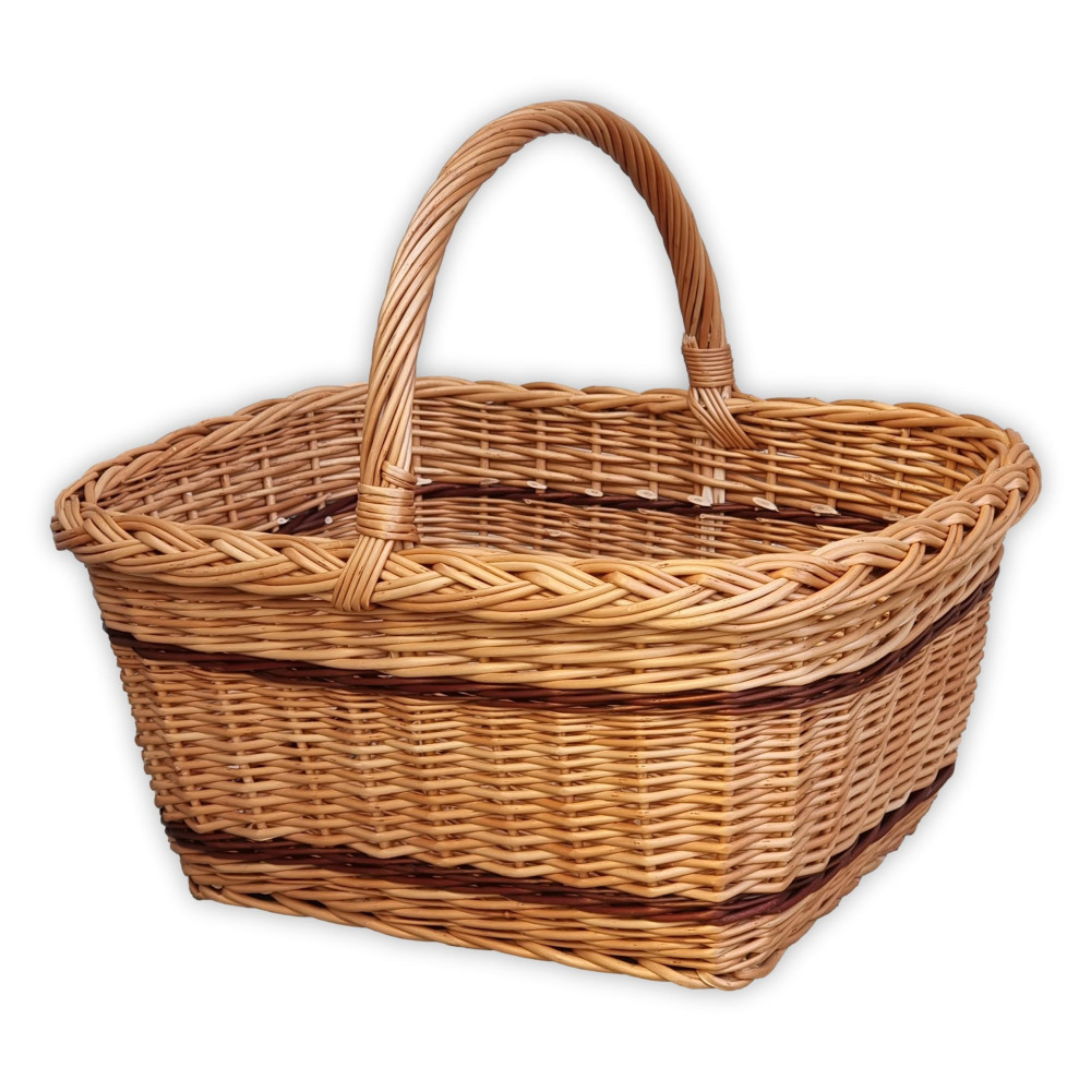 Ein großer, quadratischer Einkaufskorb aus Weide.