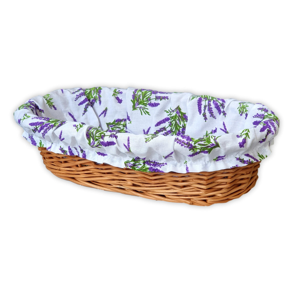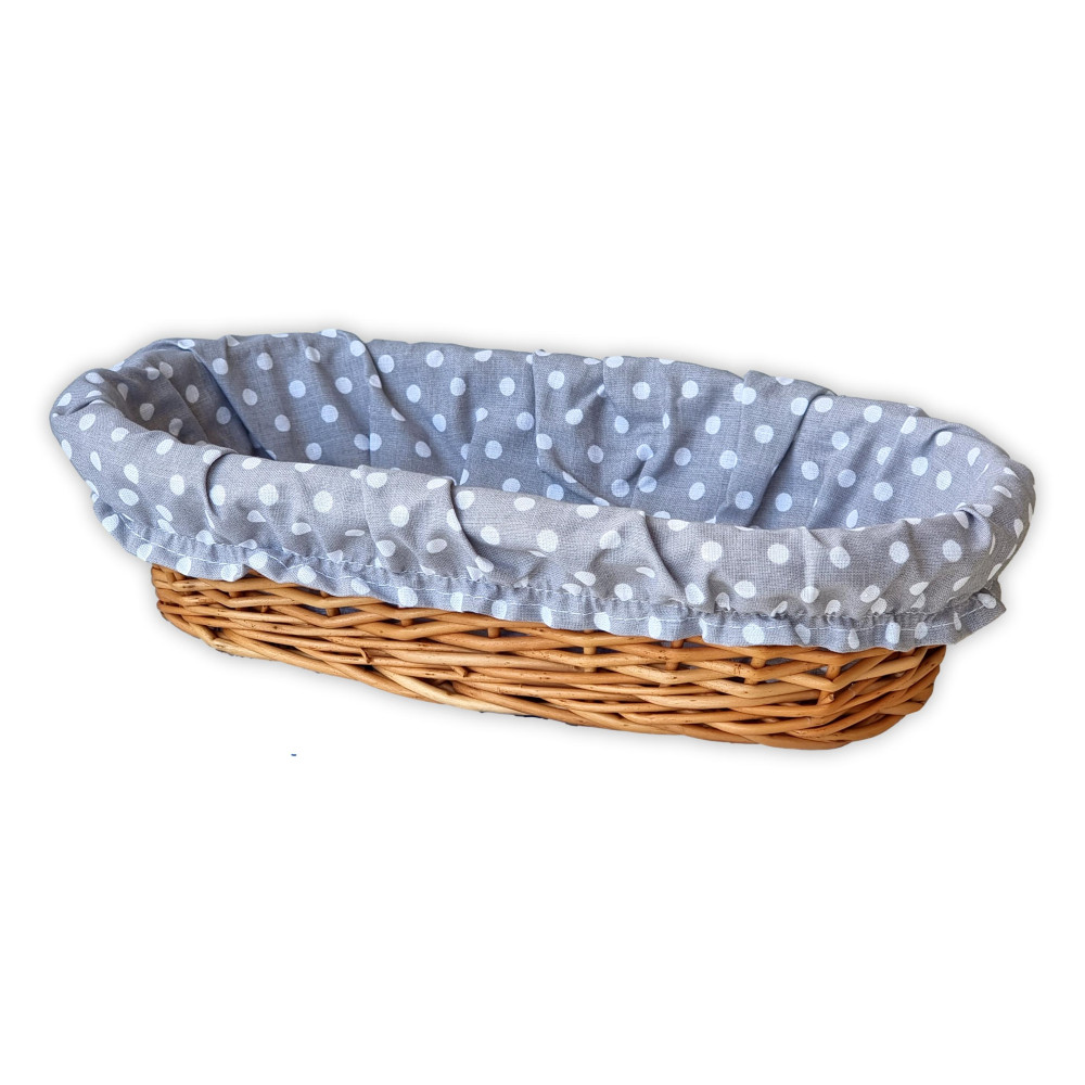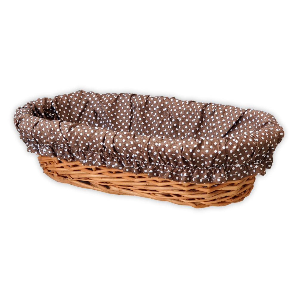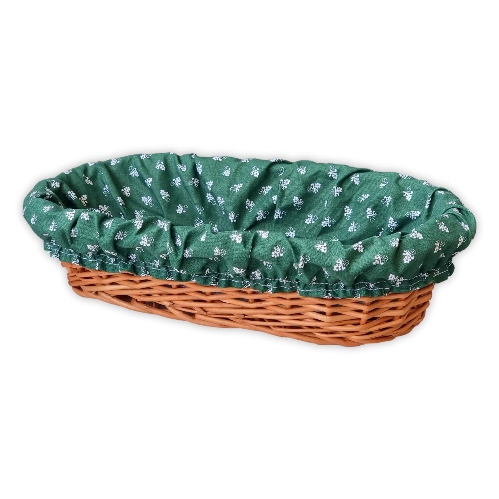 Korb aus Weidengeflecht mit Tuch. Dieser bunt gefütterte Korb macht Ihr Gebäck noch attraktiver.