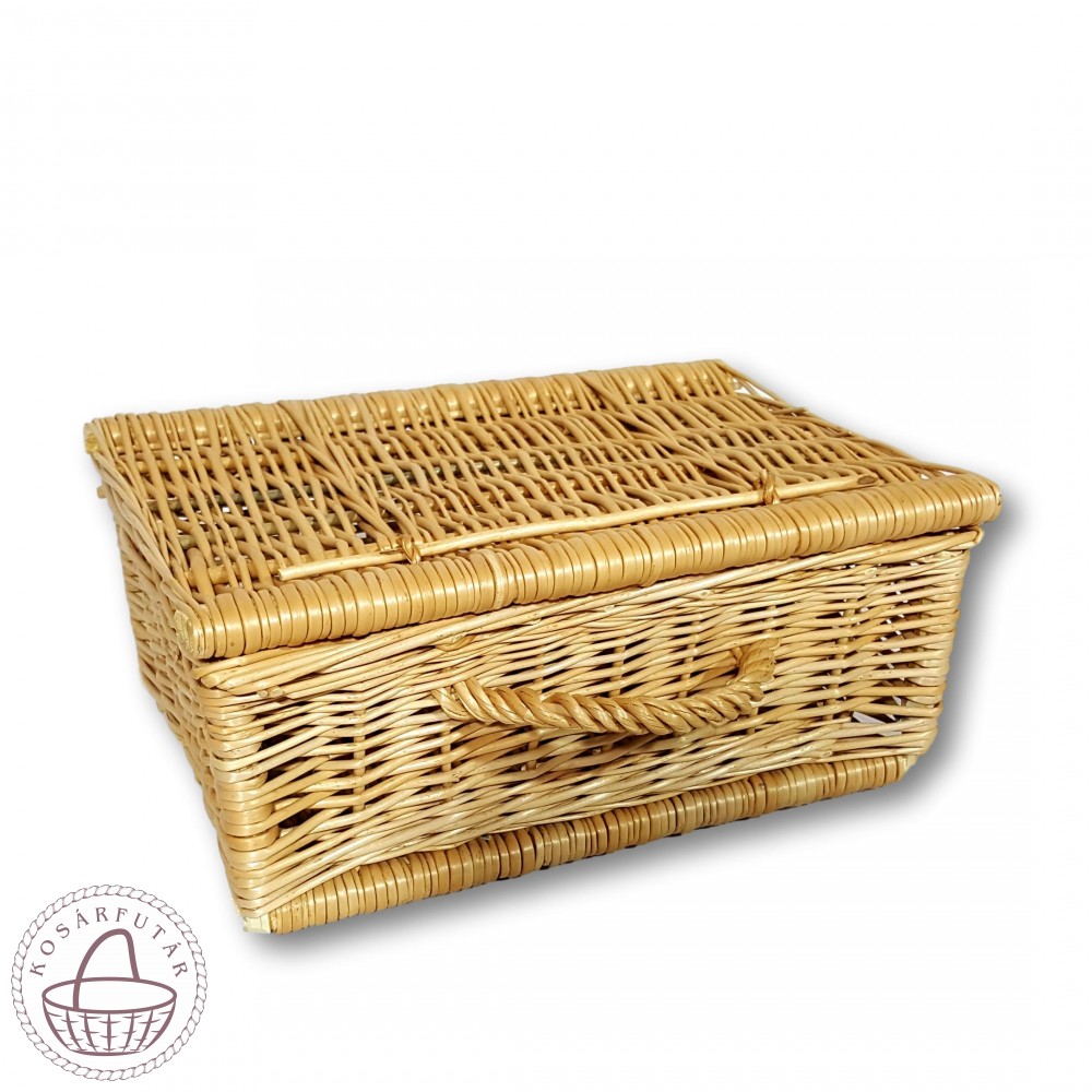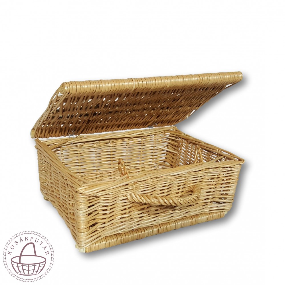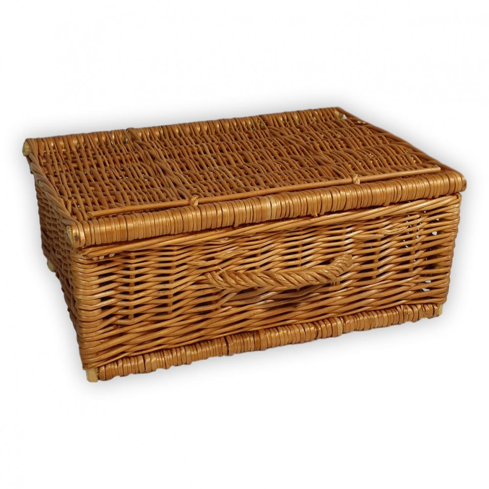 Handgefertigte, extra große Aufbewahrungsbox aus naturfarbener Weide mit Griff.
