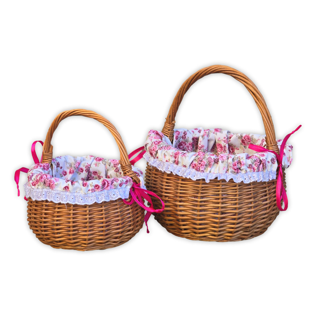 Vesszőből fonott, gömb kosár gyerekeknek, béléssel.