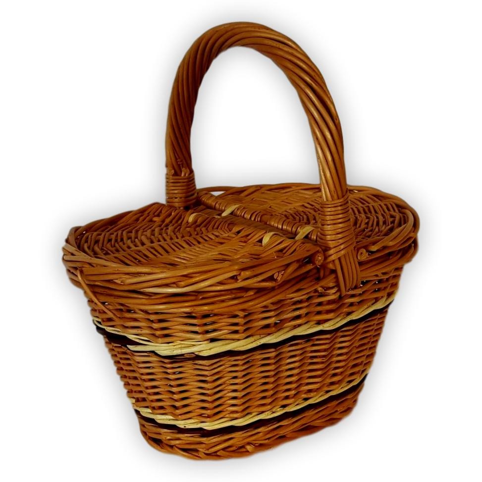 Mini-Picknickkorb aus Weidengeflecht mit aufklappbarem Deckel.