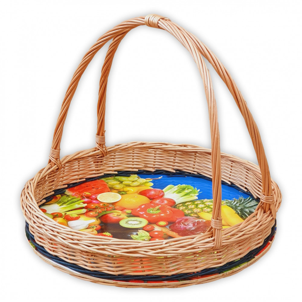 Dekoriertes Tablett mit hartem Boden und Fruchtmuster mit Doppelgriffen.