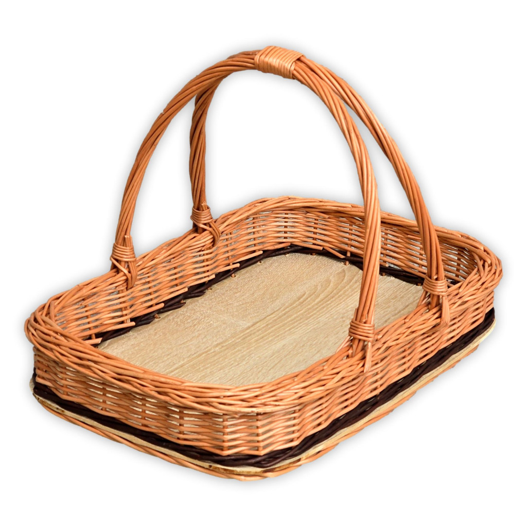 Dieses stilvolle Serviertablett mit Griffen besteht aus gekochtem Weidengeflecht, das eine natürliche Optik und Langlebigkeit bietet. Der Boden ist mit Furnier verstärkt, was für Stabilität sorgt und es ideal macht, um morgens Kaffee oder nachmittags Tee elegant zu servieren.