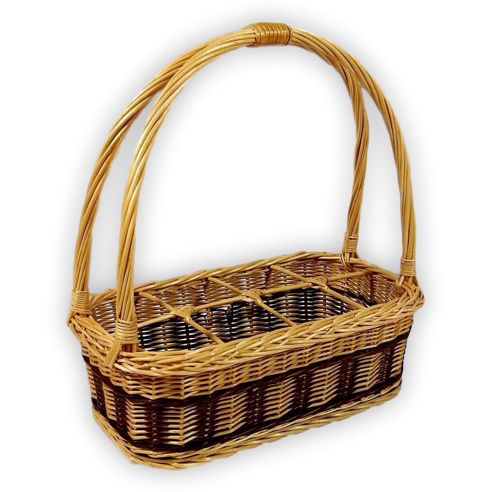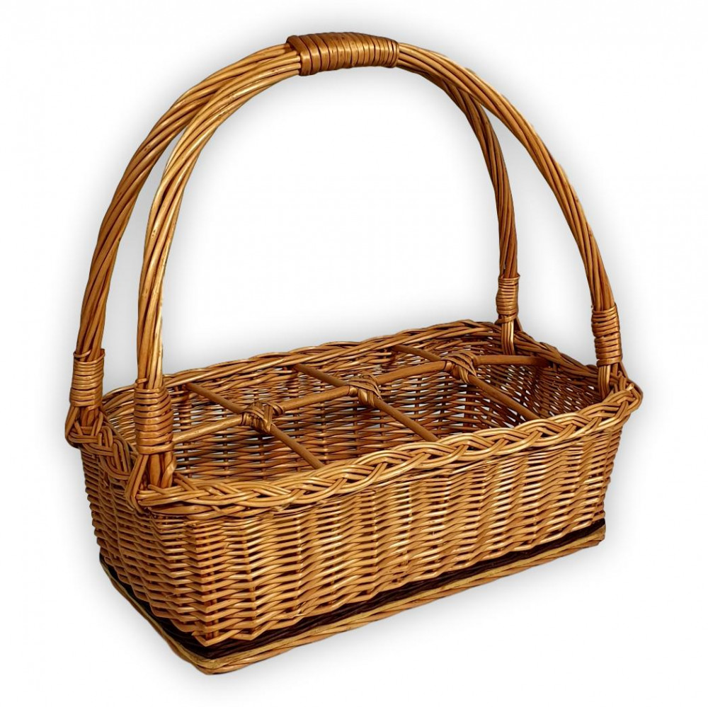 Ein Korb mit Getränkehalter aus Weide für Picknicks oder als Geschenktasche. Der Korb ist in 6, 8 und 10 Fächern erhältlich.