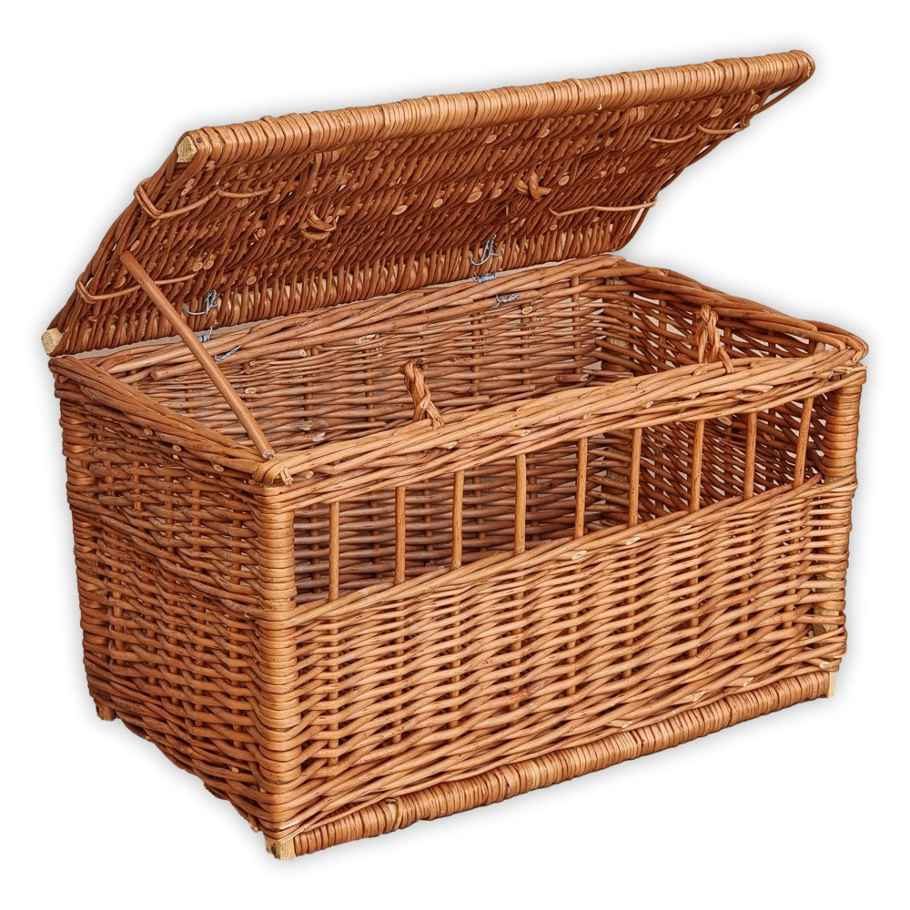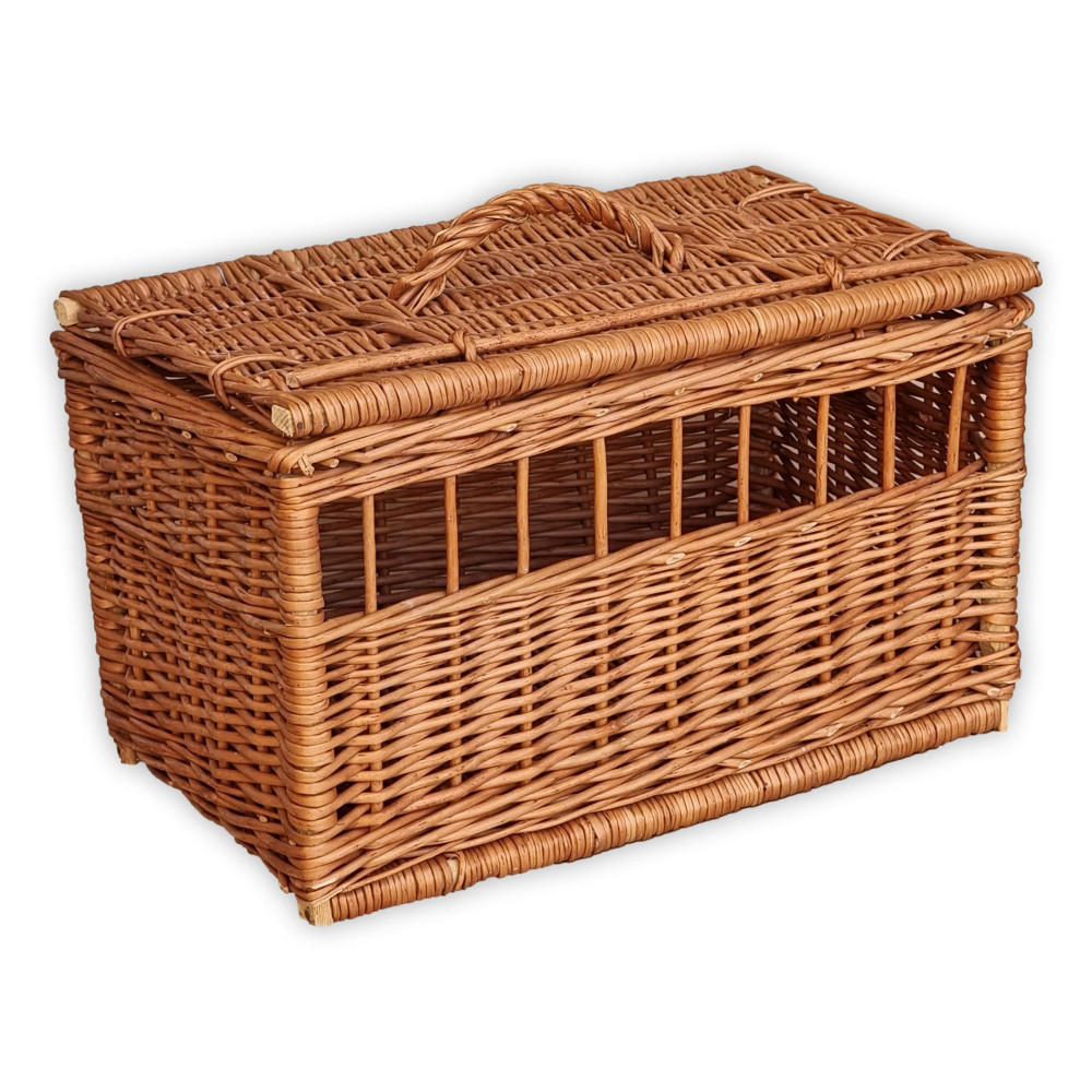 Dieser handgefertigte Taubentransportkorb ist sehr speziell, da er aus Weiden gefertigt ist. Die Weide ist ein leichtes, aber starkes und flexibles Material. Der Korb ist sowohl für den Transport als auch für die Aufbewahrung geeignet.