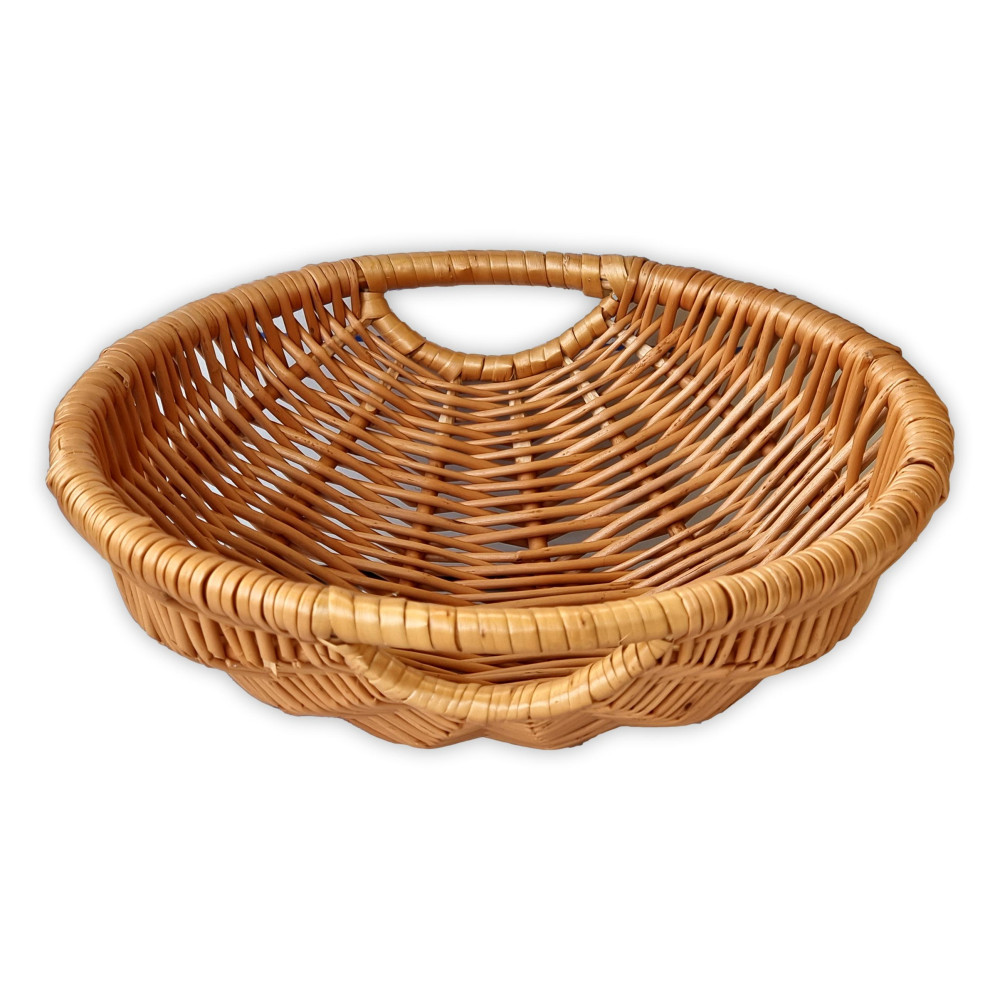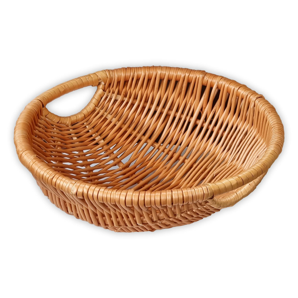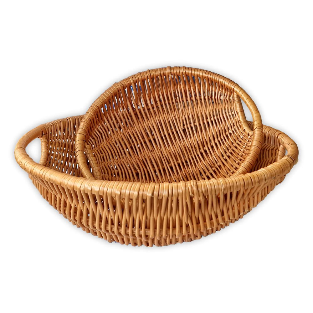 Servierschüssel aus Weidengeflecht mit Griffen an beiden Seiten.