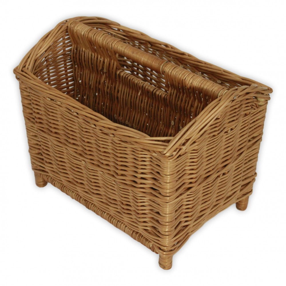 Newspaper holder hand woven from wicker. Unique design with densely woven double compartment , with a centre grip design.