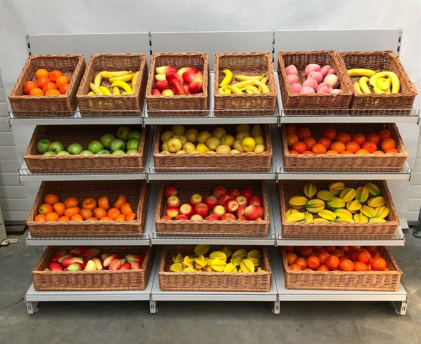 Wicker basket for storing vegetables, fruit and bakery products.