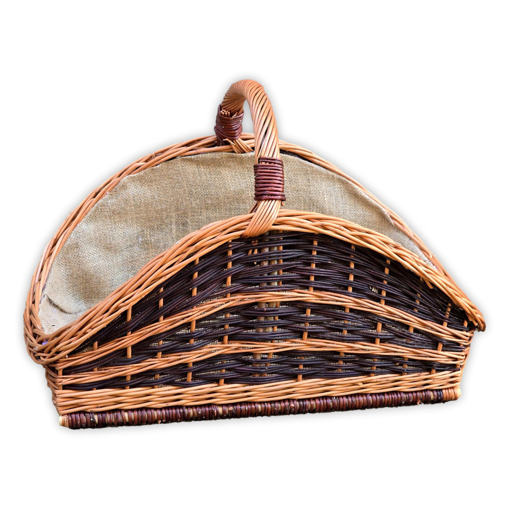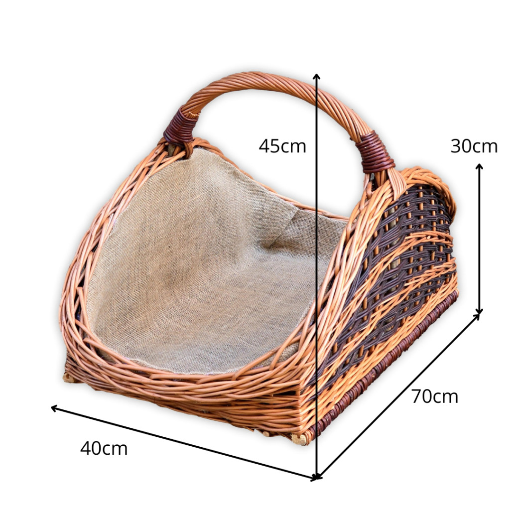 A kandalló kosár természetes vesszőből készült, amely tartósságot és rusztikus megjelenést biztosít. Belseje vászon anyaggal bélelt, amely megóvja a kosarat a szennyeződésektől. Elsősorban tűzifa tárolására és szállítására készült, de esztétikus megjelenése miatt dekorációs elemként is kiváló a kandalló közelében. Megfelelő használat mellett sok évig hűséges társ lehet a hideg téli időszakokban, biztosítva a kényelmes és rendezett tüzelőanyag-tárolást.