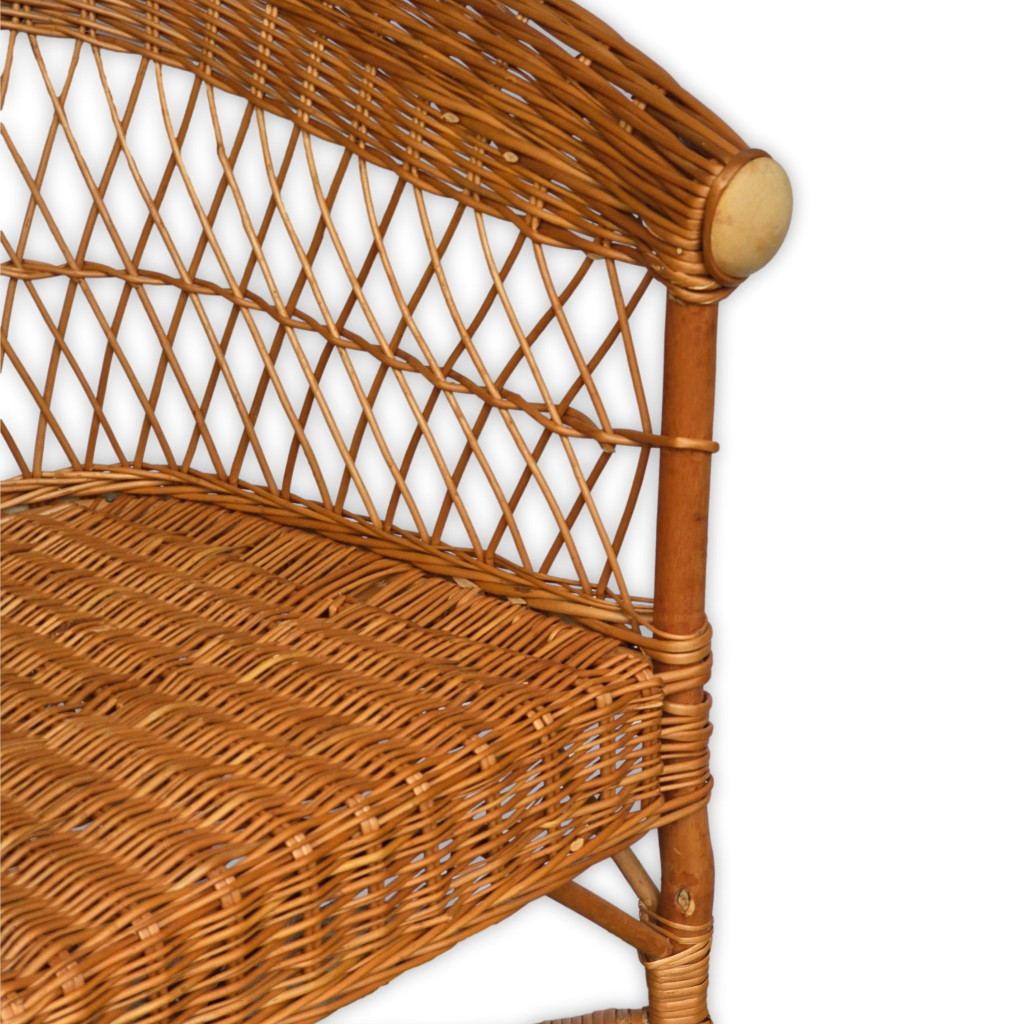 Ez a kézzel készült fonott vessző szék elegáns és időtálló kiegészítője lehet bármely otthonnak vagy terasznak. Kiváló minőségű alapanyagokból készült, így nemcsak esztétikus, hanem tartós és kényelmes is. Klasszikus formája és természetes színe meleg, barátságos hangulatot teremt bármilyen belső térben.