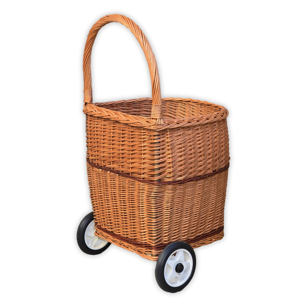 Minőségi fonott bevásárlókocsi online rendeléssel. A  bevásárló kocsi praktikus bevásárló társa lehet bárkinek. A vázra fonott  kosárba egy normál méretű bevásárló kosár többszörös tartalma fér el. A kosár kerekei egyszerűen leszerelhetők.