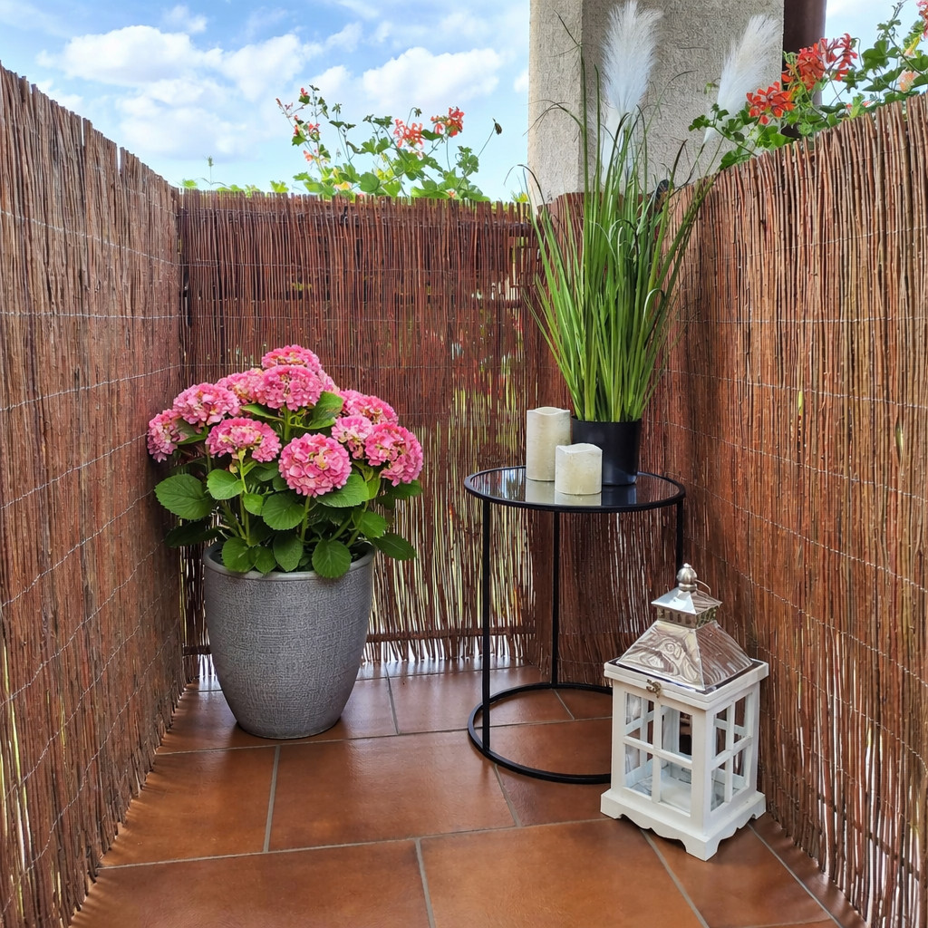 A fűzvessző árnyékolók használhatóak kertben vagy az erkélyen, mint dekoratív design elem, amely védelmet nyújt a nem kívánt pillantások és a szél ellen.